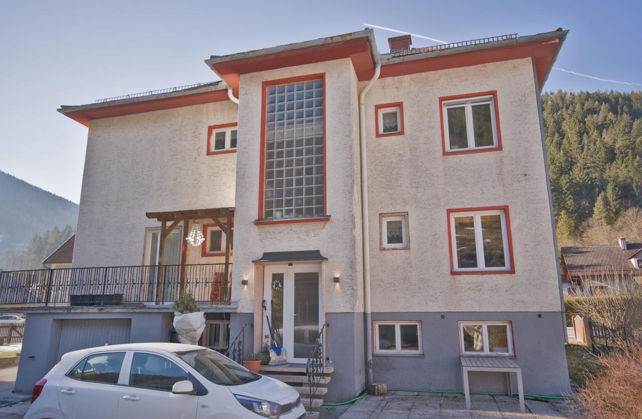 Zum Verkauf steht eine besondere Liegenschaft auf einem 862 m² großen Grundstück mit zwei separaten Häusern in ausgezeichneter Lage. Das Haupthaus ist teilweise renoviert, zweigeschossig (je 130 m² pro Ebene), voll unterkellert, mit modernster Pelletheizung und separater Garage. Die Lage überzeugt durch wunderschöne Aussicht aus allen Fenstern. Das Erdgeschoss eignet sich ideal für Gewerbe oder Geschäftszwecke, direkt an der Straße Richtung Mariazell, mit Parkplätzen vor dem Haus und großer Glasfront. Das zweite Gebäude ist eine seit 5 Jahren erfolgreich geführte, komplett renovierte Pension ( 80 m2) mit Küche, Bad, zwei Schlafzimmern und separatem Gartenbereich für Gäste. Perfekte Investition: Die laufenden...