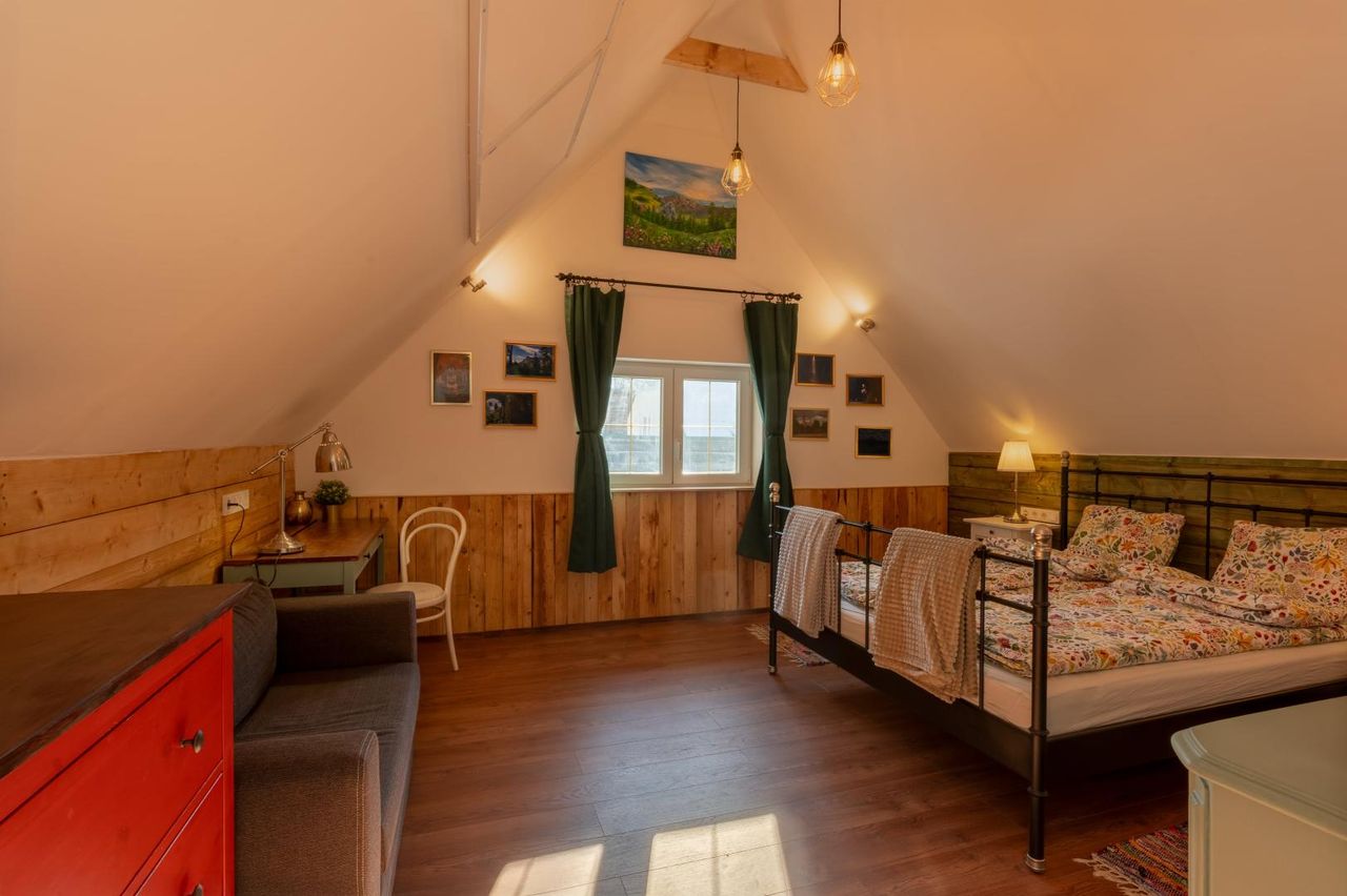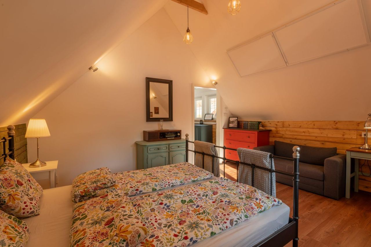 Das zweite Gebäude ist eine seit 5 Jahren erfolgreich geführte, komplett renovierte Pension ( 80 m2) mit Küche, Bad, zwei Schlafzimmern und separatem Gartenbereich für Gäste.