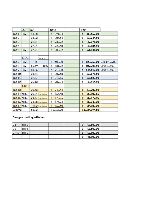 633,20 m², aufgeteilt auf 16 Wohnungen, Atelier und Studio, um gesamt € 1.080.995,-