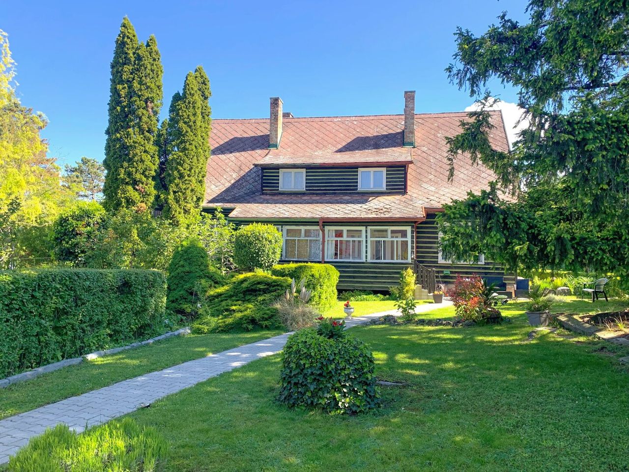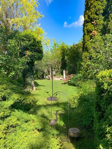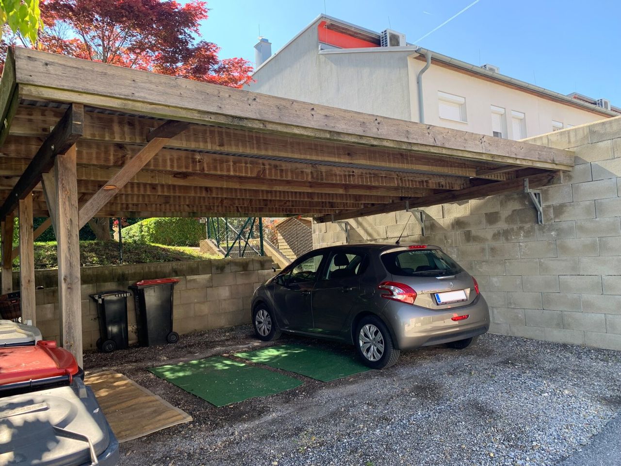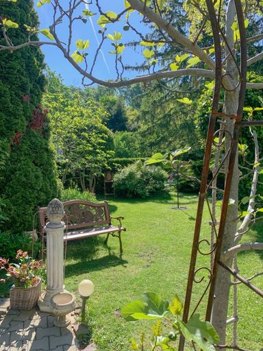 Die romantischen Gärten werden seit Jahren von den Mieterinnen liebevoll gepflegt. Ein Carport befindet sich ebenfalls auf dem Grundstück.