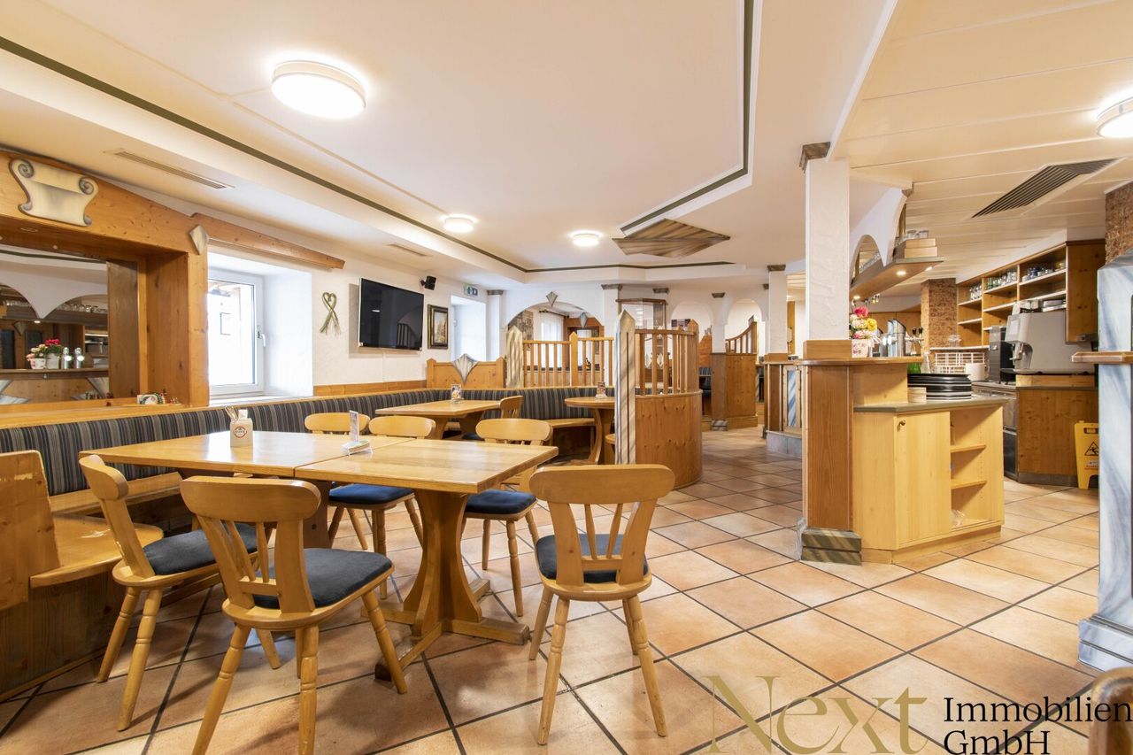 Das Objekt umfasst aktuell vier Geschosse mit einer Nutzfläche von ca. 2.891,49m² und zusätzlichen Freiflächen, darunter eine großzügige Gastterrasse, ca. 18 Freistellparkplätze und 3 Garagenparkplätze im Untergeschoss. Die bestehende Struktur bietet vielfältige Nutzungsmöglichkeiten: