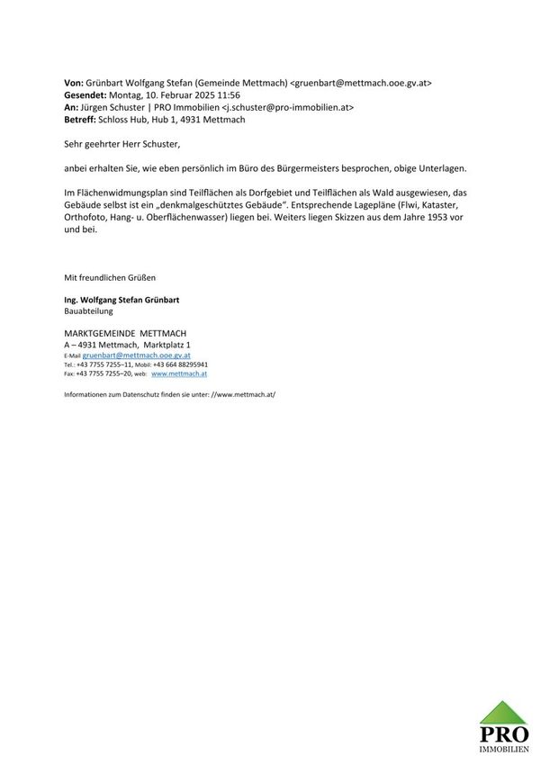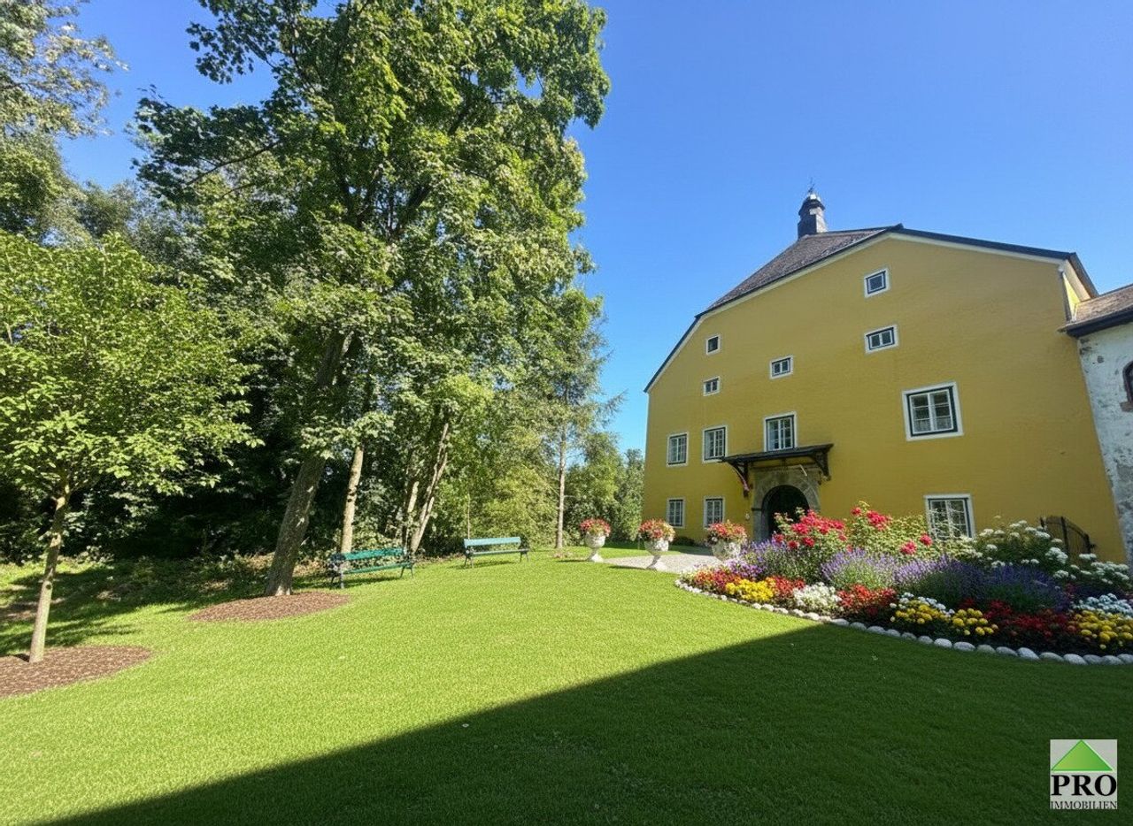 Das Schloss Hub in Mettmach liegt nur 60Km von der Stadt Salzburg, 15Km nach Ried im Innkreis und nur wenige Kilometer nach Bayern entfernt. Es liegt erhaben auf einem Hügel, wo man den Schloßteich aus sehen kann. Man kann entspannen, die Natur und Ruhe geniessen. Es kann das Gesamte Areal erworben werden, mit Nebengebäude, Schlossteich auf insgesamt rund 14.458 m2 großem Grundstück. Ideal auch für Pferdehaltung geeignet! Das Anwesen hat großes Entwicklungspotential, ob für privat oder auch für geschäftliche & Repräsentative Zwecke bestens geeignet. Das Nebengebäude kann für sämtliche Wünsche umgebaut werden, ob für Garagen eines Autosammlers, Beherbergung, Events, es...