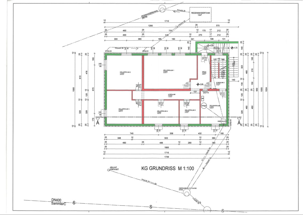 Kellergeschoss (ca. 122 m² – Rohbau)