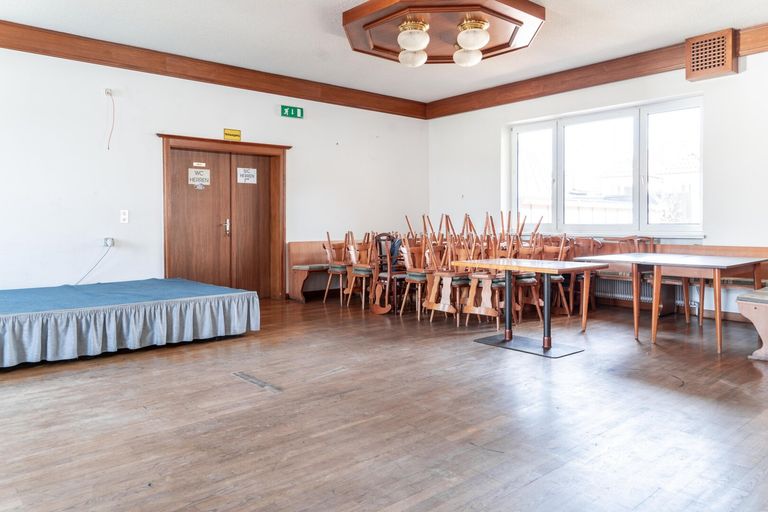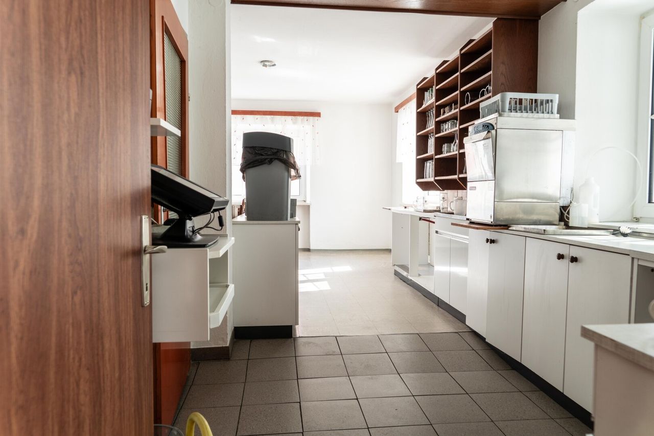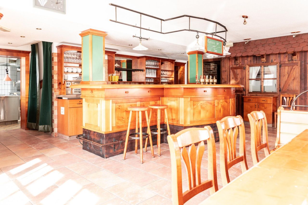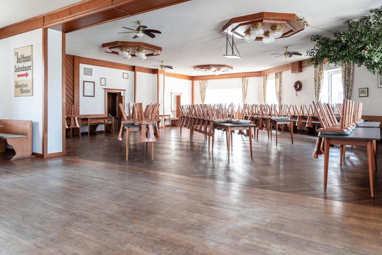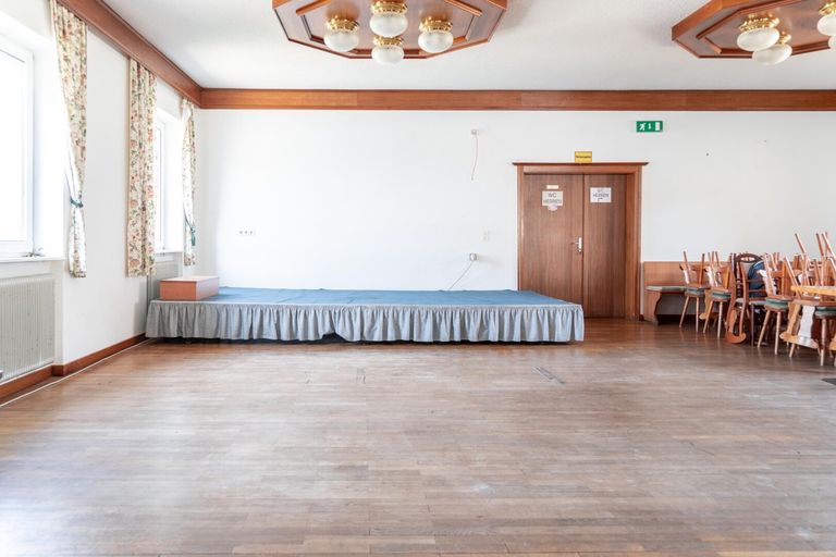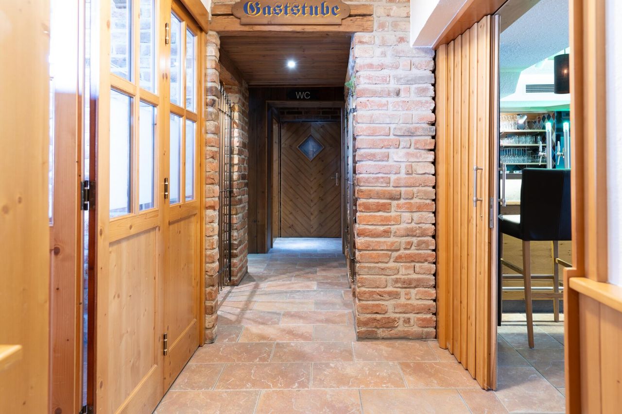 - Gaststätte - Sanitäranlagen - Gästezimmer - Saal - Personalraum - Wohnungen - Garage - Gastgarten