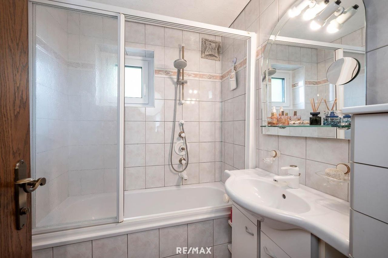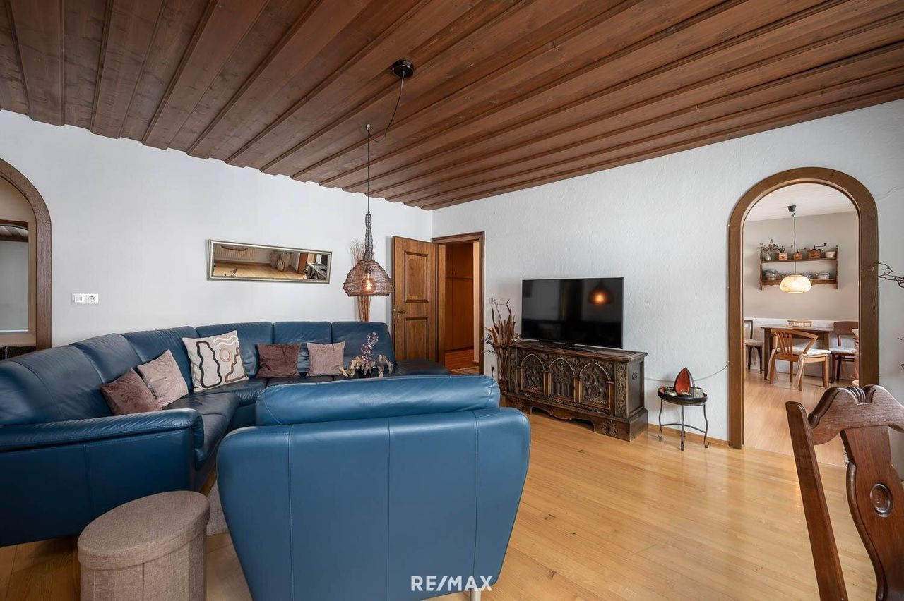 In den oberen Etagen entfalten sich zwei attraktive Wohneinheiten, die durch Helligkeit, warme Materialien und eine harmonische Raumaufteilung überzeugen. Großzügige Wohnbereiche, offene Küchen und gemütliche Schlafzimmer schaffen ein Zuhause, das sowohl Ruhe als auch Lebensqualität bietet. Die sonnige Terrasse eröffnet einen herrlichen Blick auf die umliegende Berglandschaft – ein tägliches Panorama, das begeistert.