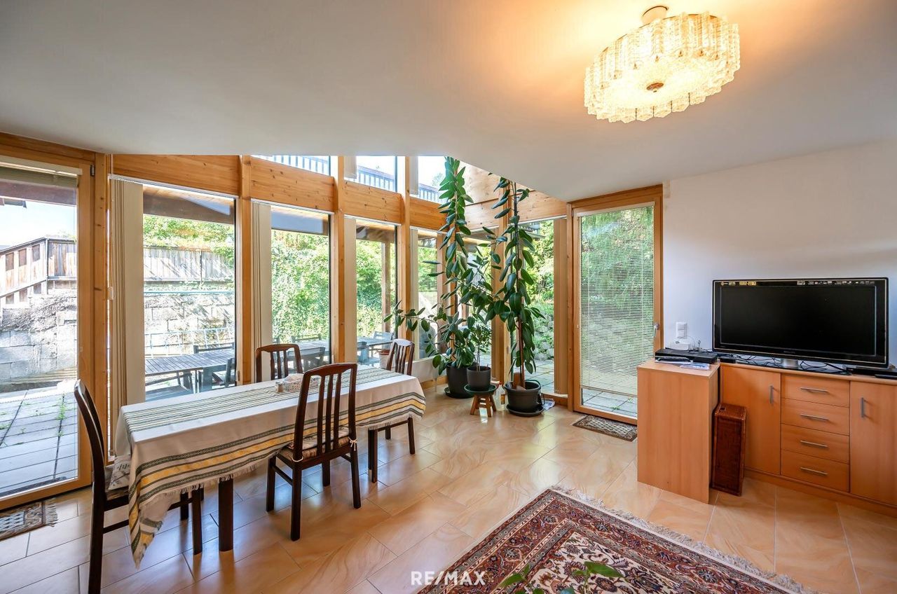 Der ursprüngliche Teil (1960 und 1970) strahlt Beständigkeit und Potenzial aus – ideal für alle, die gestalten und Werte erhalten möchten. Der Zubau aus 2013 hingegen begeistert mit Offenheit, Licht und moderner Architektur: hohe Räume, eine Galerie, großzügige Glasflächen und zweiTerrassen, die den Blick weit ins Grüne schweifen lässt - Platz genug für ein Leben zu zweit.