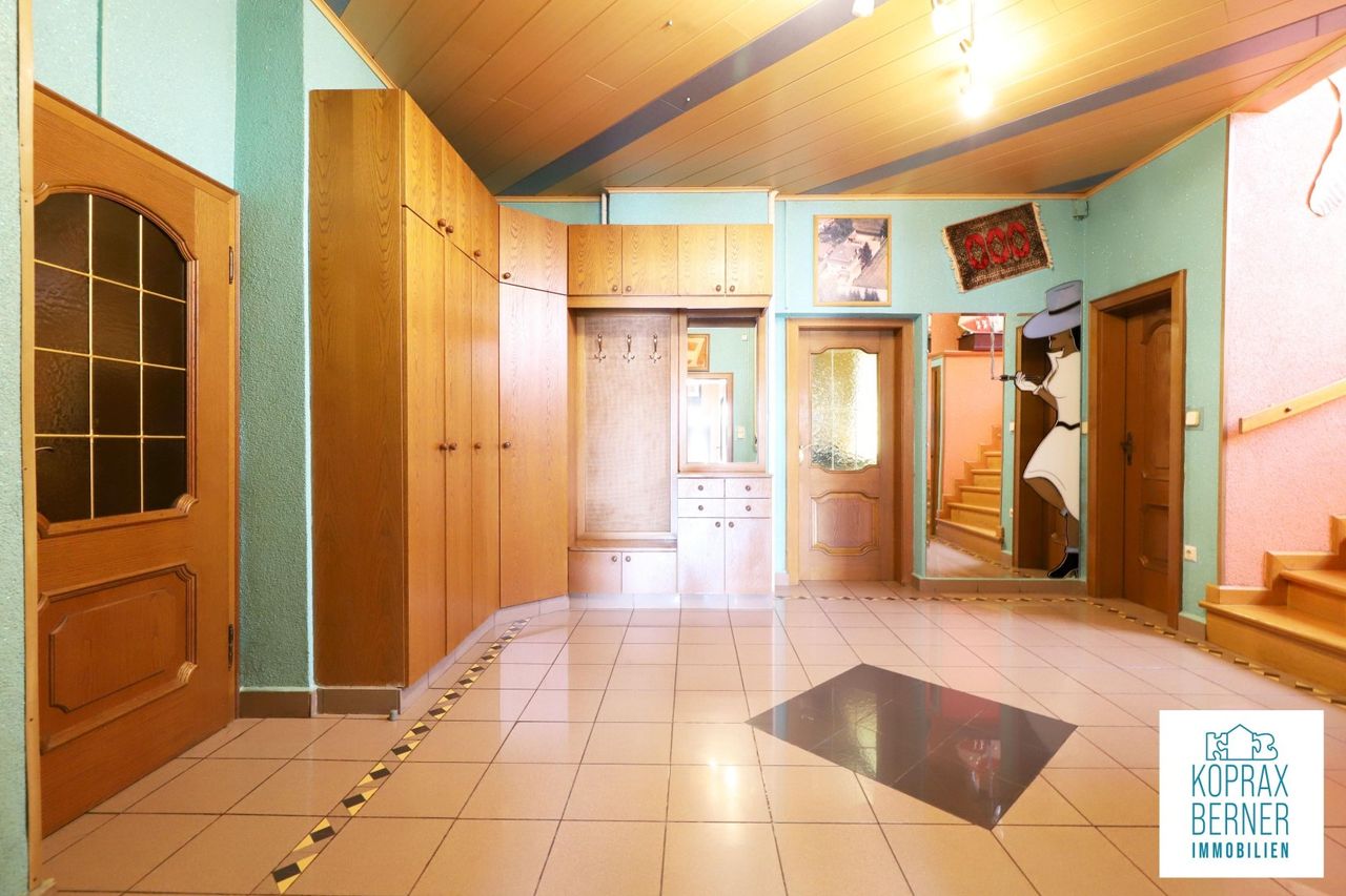 Großzügiges Wohn- und Geschäftshaus Dieses großzügige Wohn- und Geschäftshaus liegt in der Landeshauptstadt St.Pölten im beliebten Stadteil Wagram. Der Geschäftsteil wird aktuell als Fleischerei mit angeschlossenem Verkaufsraum geführt. Der Verkaufsraum ist auf der Straßenseite mit einer Auslage und dem Kundeneingang ausgestattet. Im Innenhof stehen ihnen drei Garagen zur Verfügung, sowie eine vierte auf der Straßenseite. Im hinteren Teil des 836m² großen Grundstückes liegt der Gartenbereich mit einem Swimmingpool. Der Pool ist mit einer mobilen Abdeckung überdacht und sie können in der angrenzenden Laube im Schatten gemütlich ausspannen. Die Wohn- und Geschäftsfläche der Liegenschaft teilt sich wie folgt auf: ERDGESCHOSS mit...