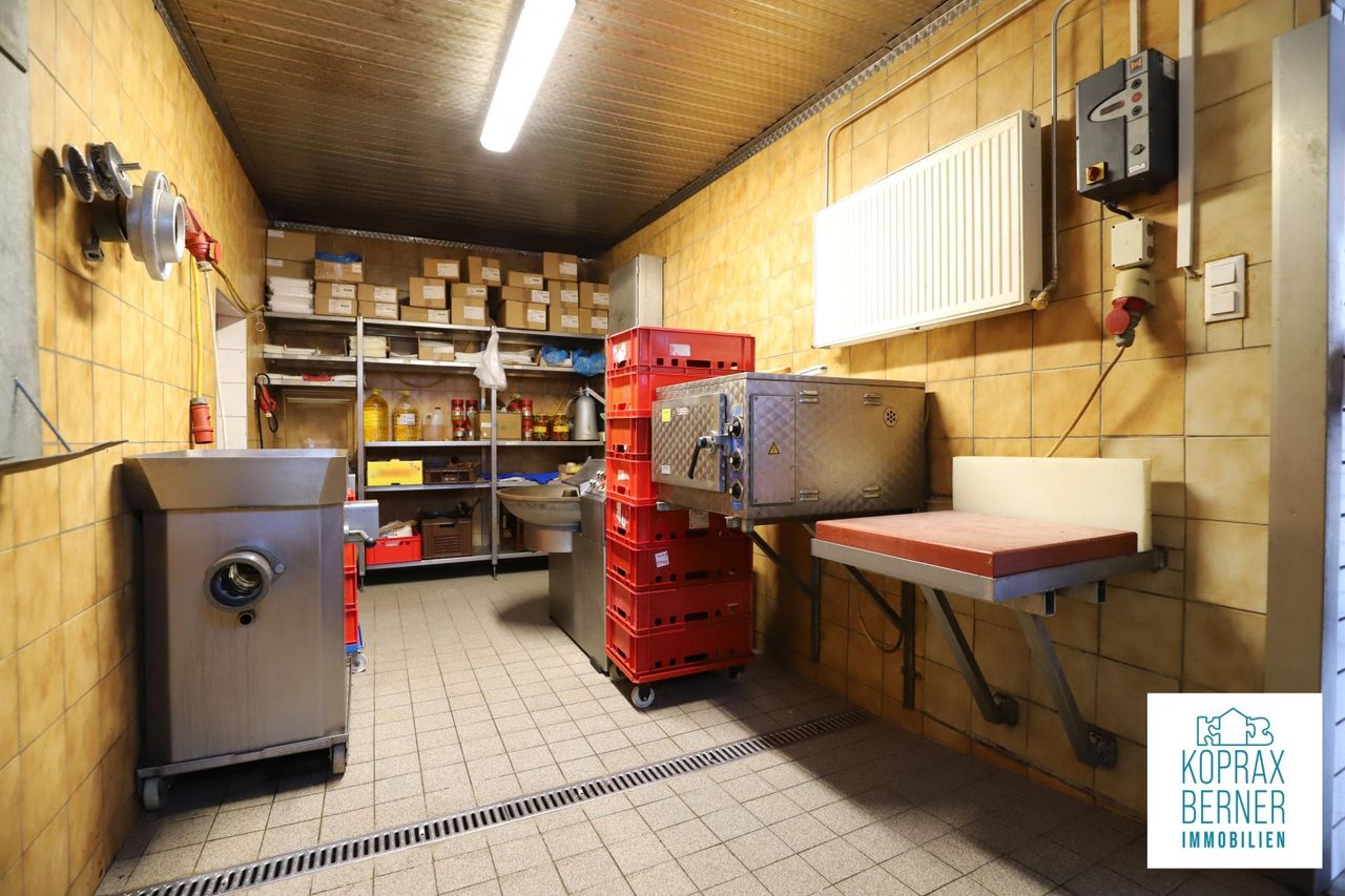 Der Geschäftsteil wird aktuell als Fleischerei mit angeschlossenem Verkaufsraum geführt.