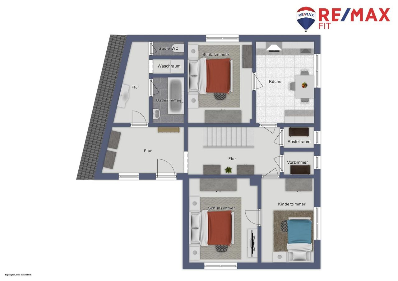 OG: Küche-Essen-Wohnen, 2 Schlafzimmer, WC, Bad