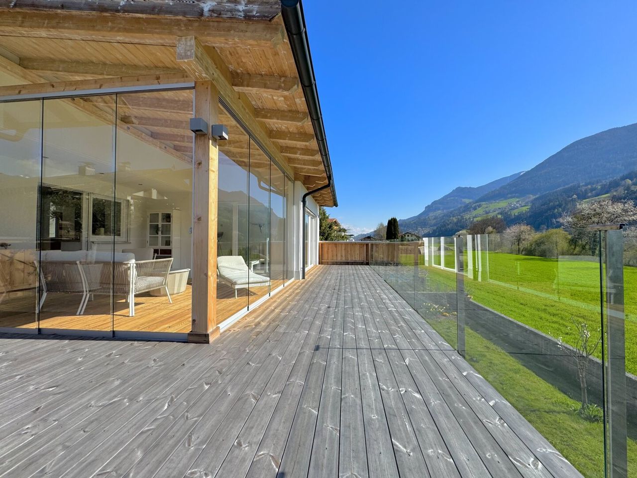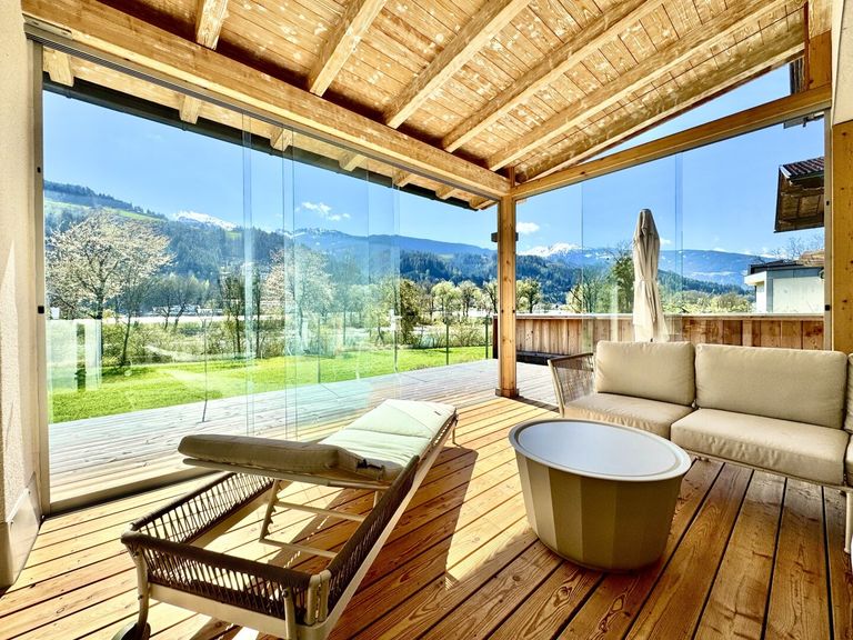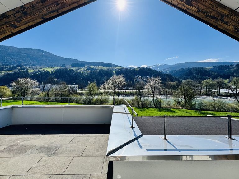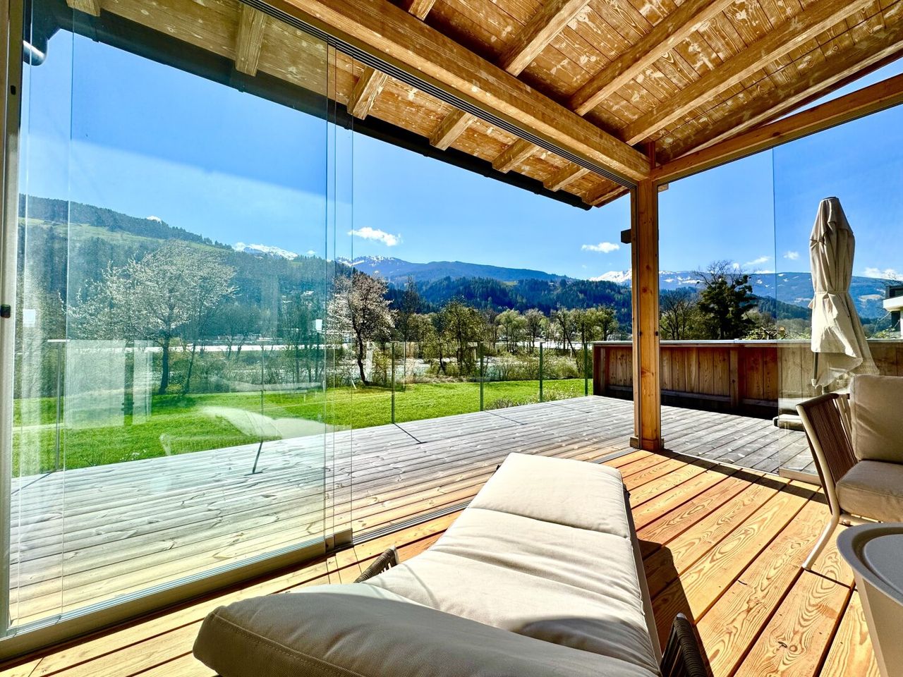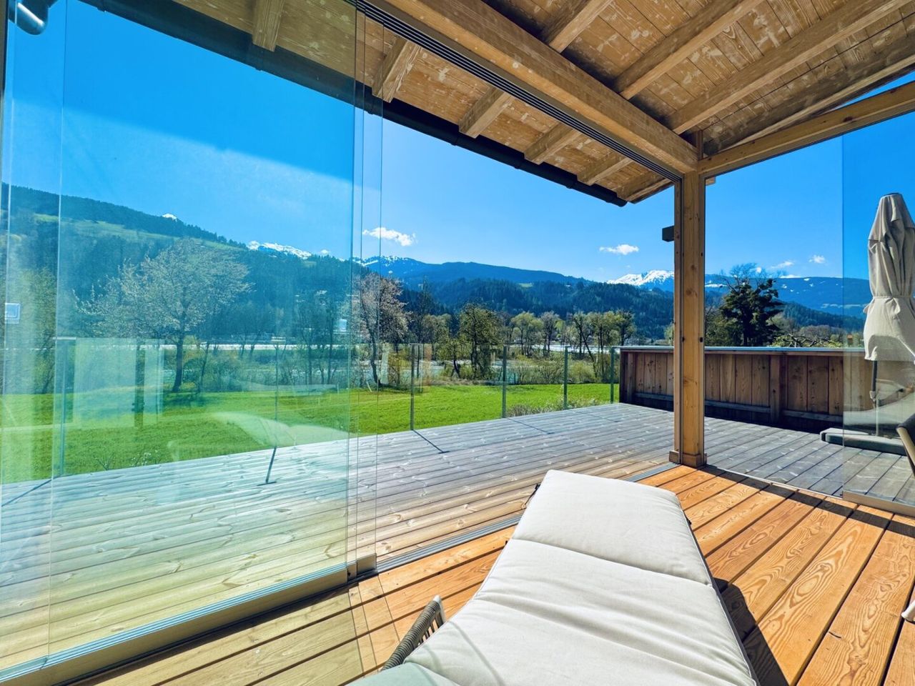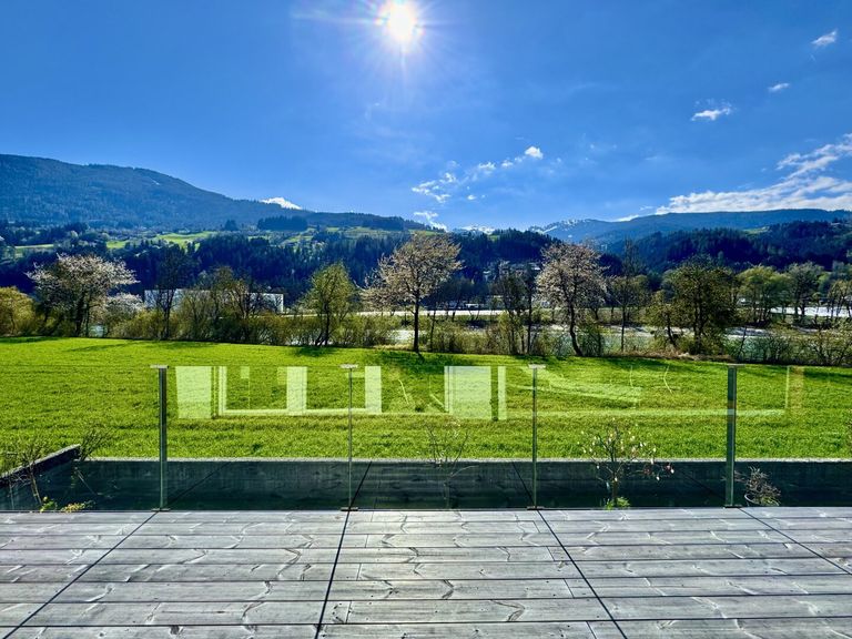 Der Ausblick auf Fluss und Berge macht diesen Ort zu einem außergewöhnlichen Platz- ein seltenes Juwel in Tirol