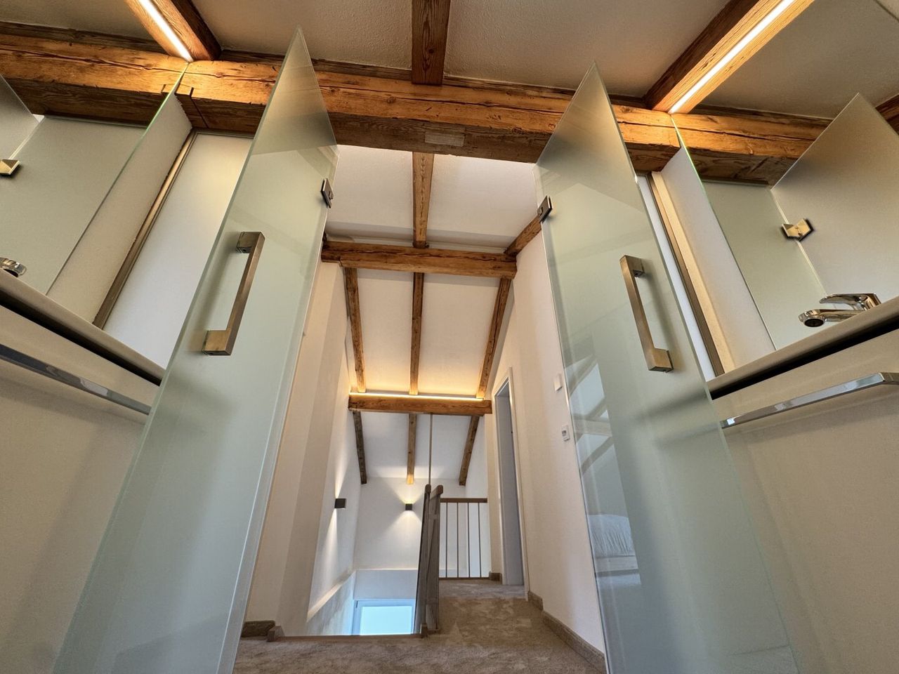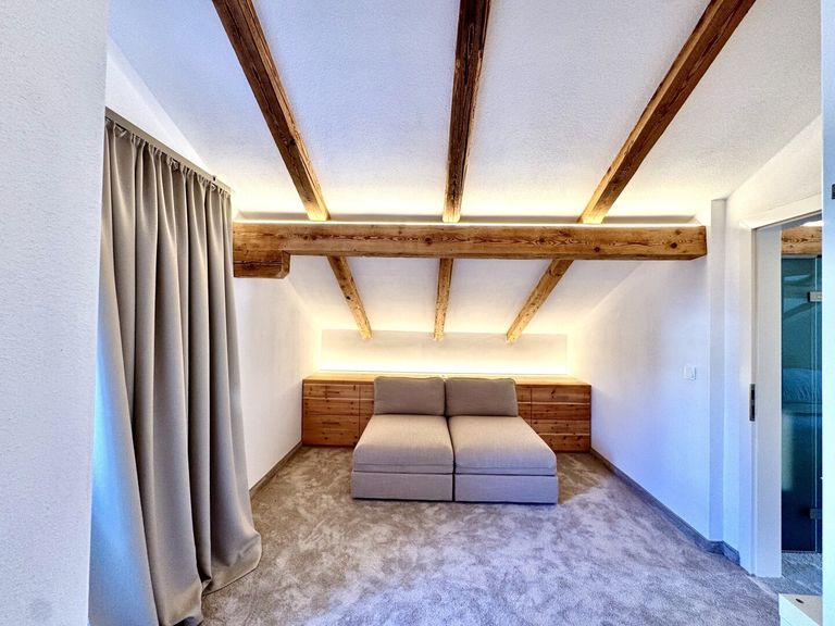 Das Haus wurde im Jahr 2024 umfassend renoviert, inklusive Entkernung und Neuinstallation des Dachgeschosses mit sichtbarem Dachstuhl, Lehmputz, neuer Lärchenholztreppe, modernisiertem Badezimmer, Abstellraum, Balkon und Zirbenmöbeln.