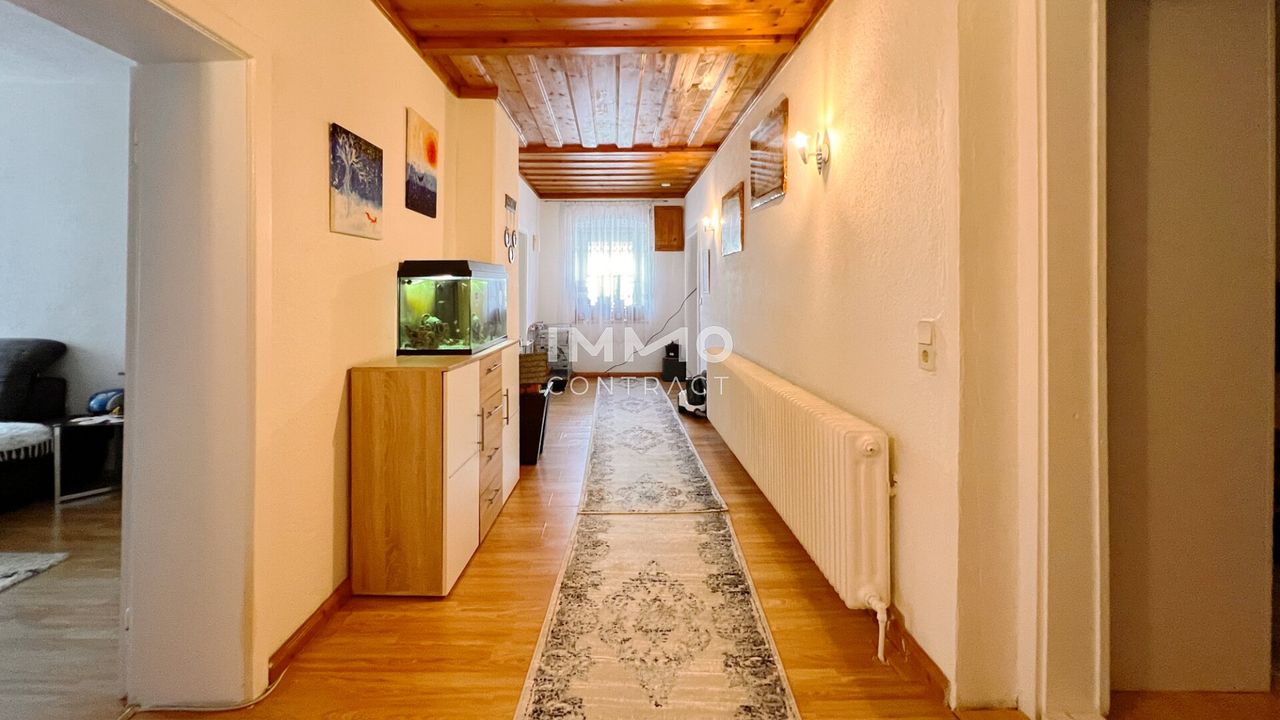 Im Erdgeschoss eröffnet sich zusätzlicher Spielraum: Ob als moderner Wohnraum, Büro oder Gewerbefläche – hier können neue Perspektiven entstehen. Garage und Stellplätze sind ebenfalls vorhanden.