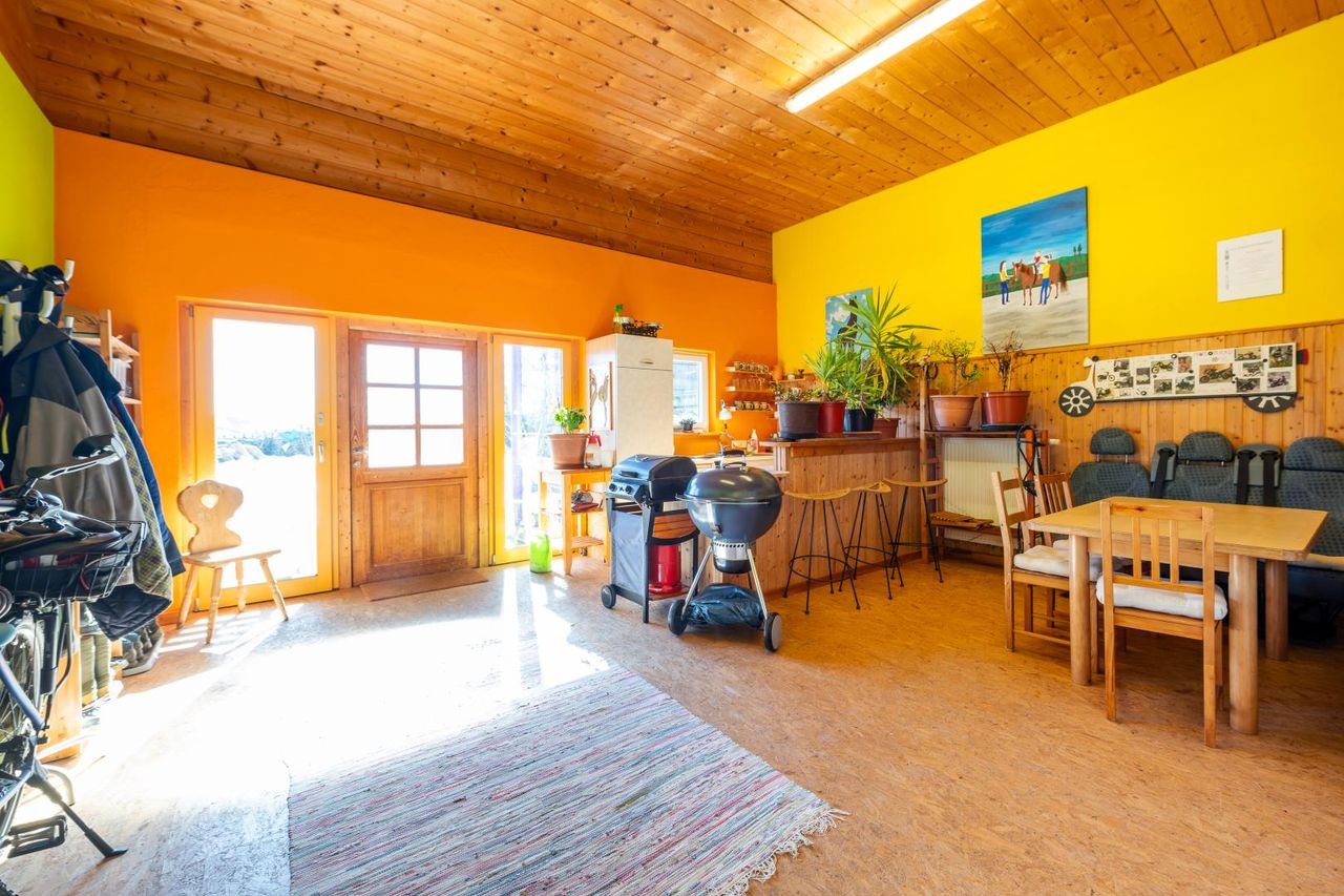 1999 als Reiterhof erbaut und zwischen 2006 und 2008 zum Wohnhaus umgebaut, findet sich hier ein Lebens(t)raum auf rund 2,4 Hektar Eigengrund, Wiese und Weide sowie einem eigenen Wald, der Weite spürbar macht und Möglichkeiten eröffnet, die im Alltag selten geworden sind. Und für alle, denen es zu groß ist, sollte es auch eine Möglichkeit geben, das Grundstück zu verpachten.