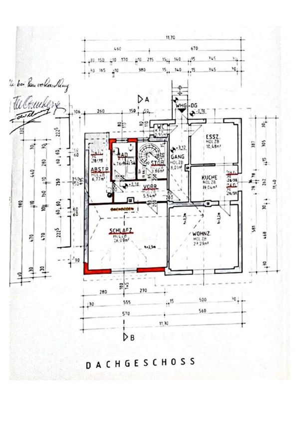 - Wohneinheit 2 - DG mit rund 94,93 m²: Vorraum, Küche und Essbereich, Schlafzimmer, Wohnzimmer mit Durchgang...