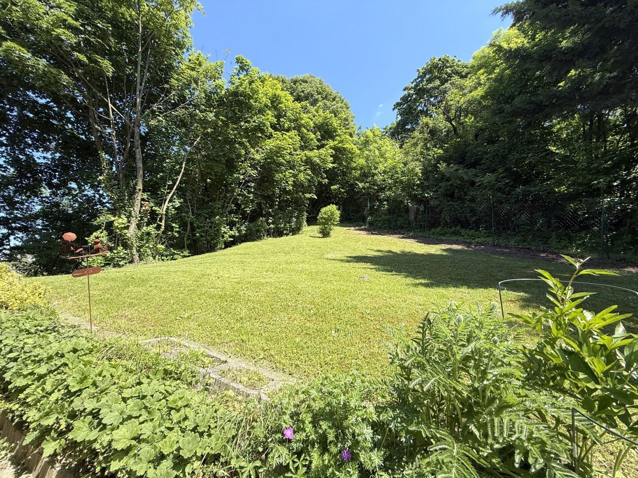 Das Grundstück selbst misst großzügige 2.750 m²- kleiner Wald inklusive – ein Paradies mit Terrassen, Rasenflächen, Blumeninseln, Rückzugsnischen.