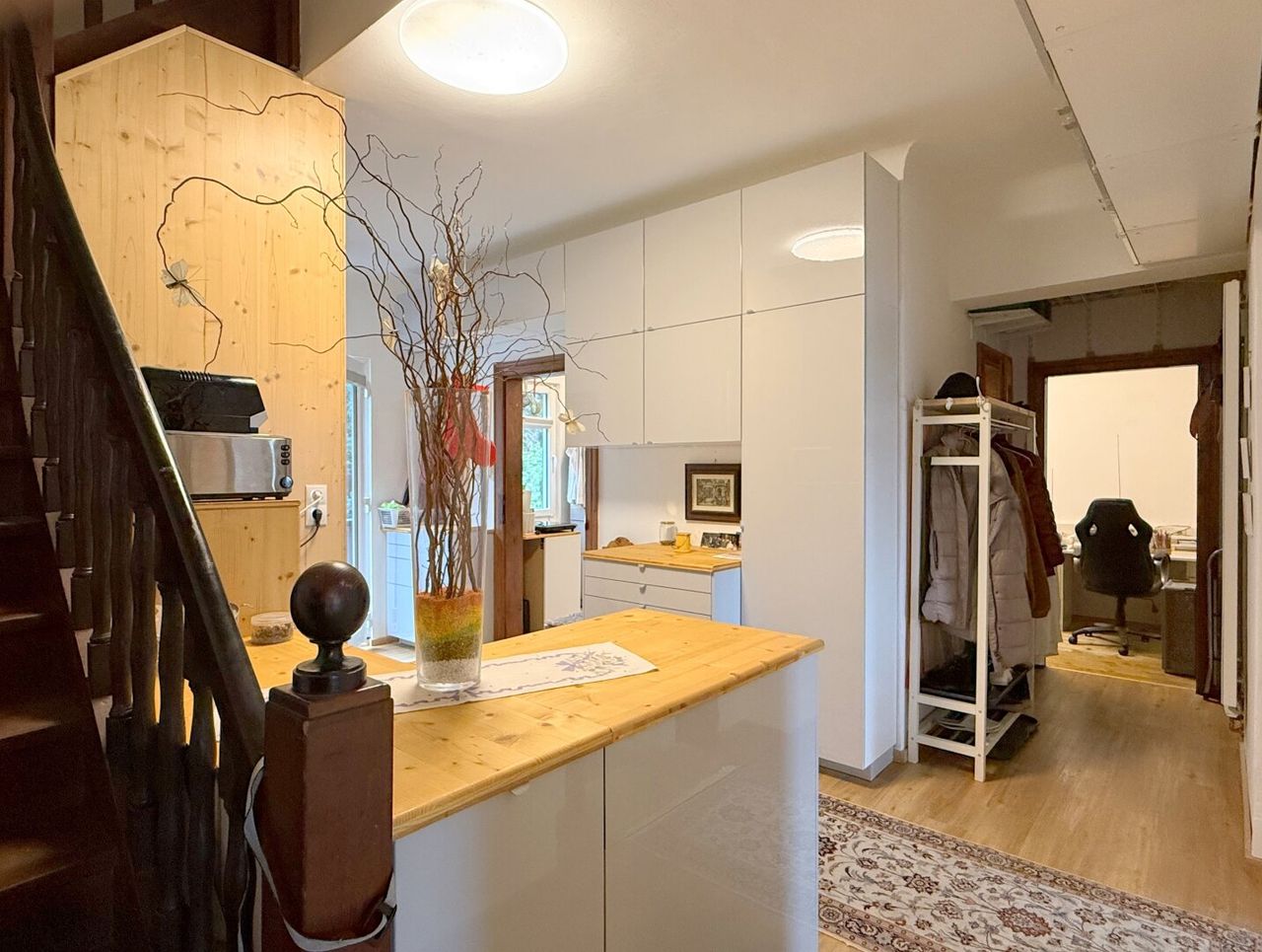 Besonders charmant ist, dass durch die Aufteilung des Hauses bis zu drei separate Wohneinheiten denkbar sind. Ob für Mehrgenerationen, Gäste, Wohnen und Arbeiten oder zur teilweisen Vermietung – das Potenzial für flexibles Wohnen ist jedenfalls gegeben.