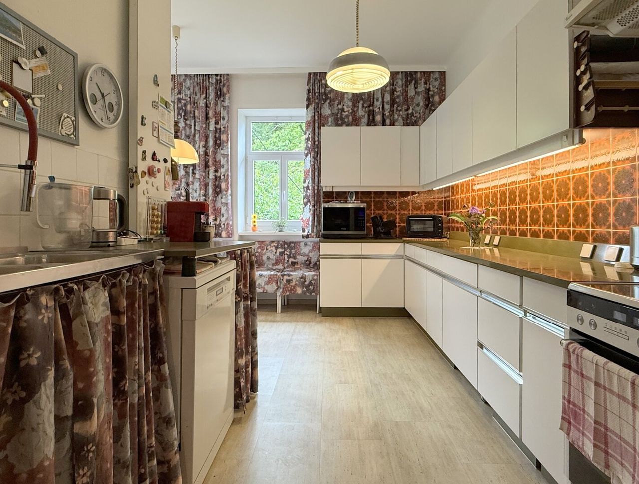 Insgesamt stehen mindesten 10 Zimmer zur Verfügung – unterschiedlich groß, in verschiedenen Ecken des Hauses, jedes mit einem eigenen Charakter. Für große Familien, Patchwork-Konstellationen oder Menschen, die Wohnen, Arbeiten und Kreativsein unter einem Dach vereinen möchten.