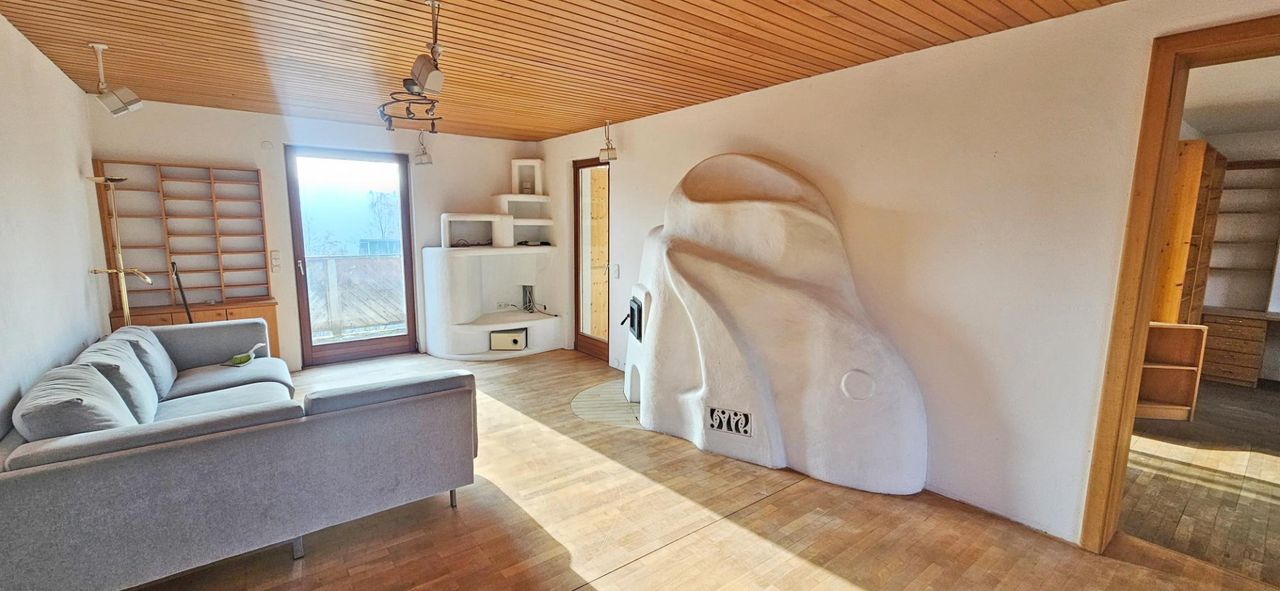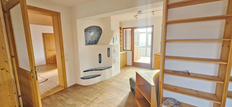 Die beiden größeren Wohnungen verfügen über eine angenehme Wandheizung, während die kleine Wohnung mit Radiatoren ausgestattet ist. Ein Kachelofen im weitläufigen Wohnzimmer im 1. Obergeschoss sorgt zusätzlich für eine besondere Wohnatmosphäre und beheizt zwei weitere Räume mit.
