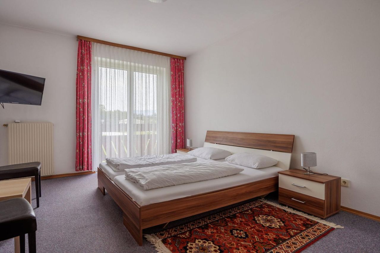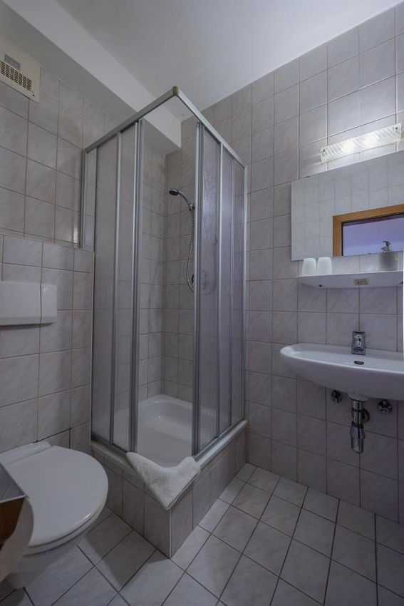 - 7 Gästezimmer mit kleinem Flur, eigenem Bad (Dusche & WC), Aufenthaltsraum mit Doppelbett und teilweise mit Balkon