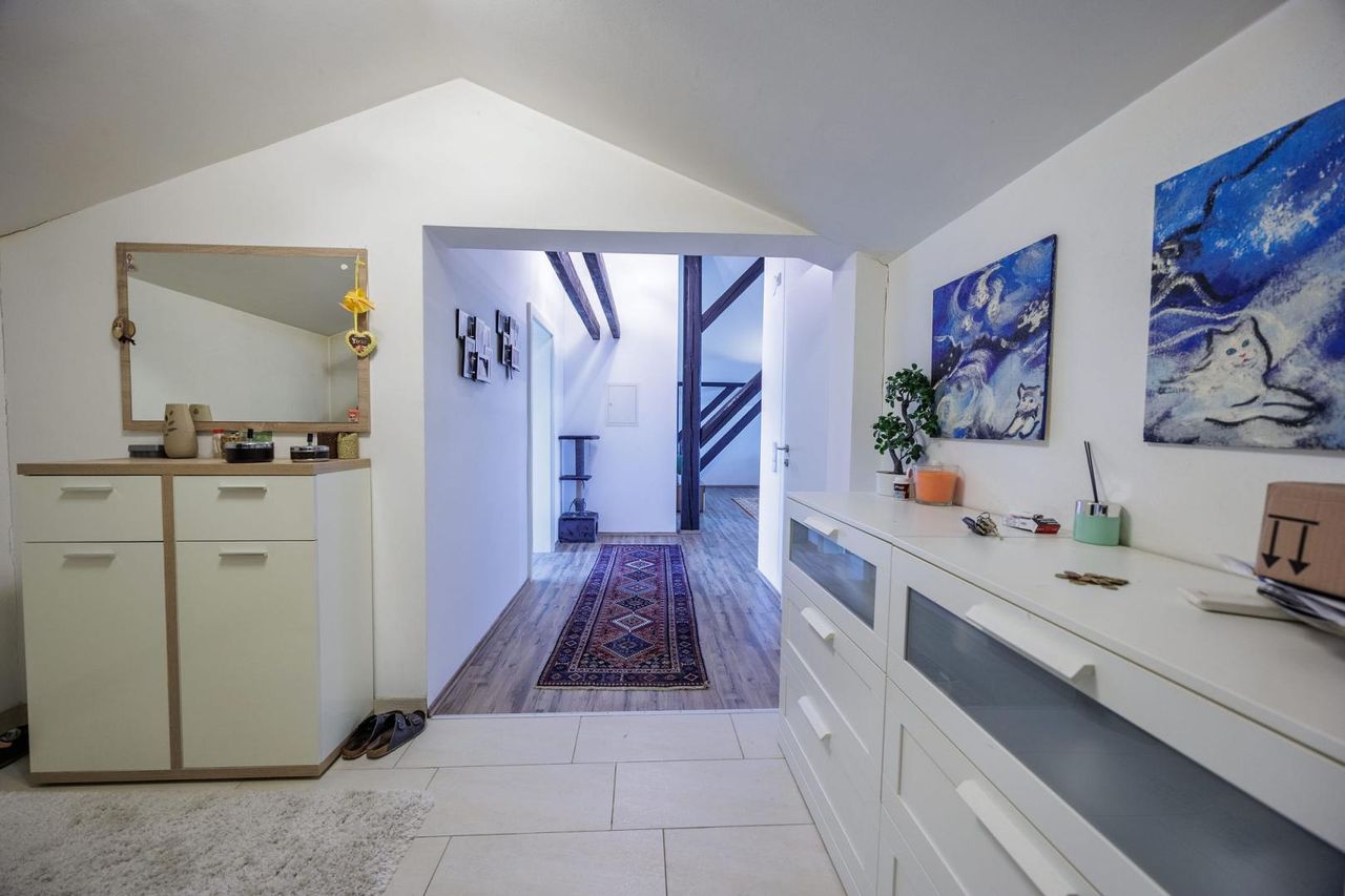 Im Jahr 2014 wurde die Dachgeschosswohnung modern ausgebaut und präsentiert sich mit hochwertiger Ausstattung, lichtdurchfluteten Räumen und zeitgemäßem Wohnkomfort.
