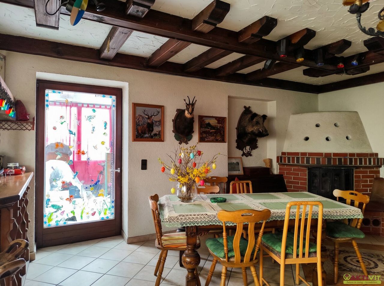 Das Haus erstreckt sich über Erdgeschoss, Obergeschoss und zweites Obergeschoss und bietet dadurch ein besonders flexibles Nutzungskonzept. Im Erdgeschoss stehen ca. 142 m² sowie zusätzlich ca. 20 m² zur Verfügung, die derzeit als Geschäftsfläche genutzt werden und über ein eigenes Bad sowie ein eigenes WC verfügen. Die Ebene umfasst zwei große Wohnzimmer, eines mit Kamin und eines mit Kachelofen, eine kleine Küche, ein Bad mit WC, ein Schlafzimmer sowie einen großen Wintergarten mit Holzofen.