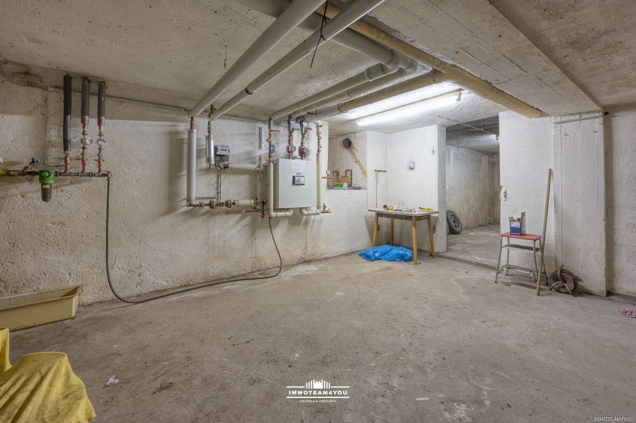 Die Elektrik (Verteiler und Stromleitungen) wurde bereits teilweise erneuert. Betondecken.