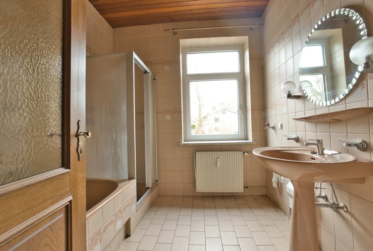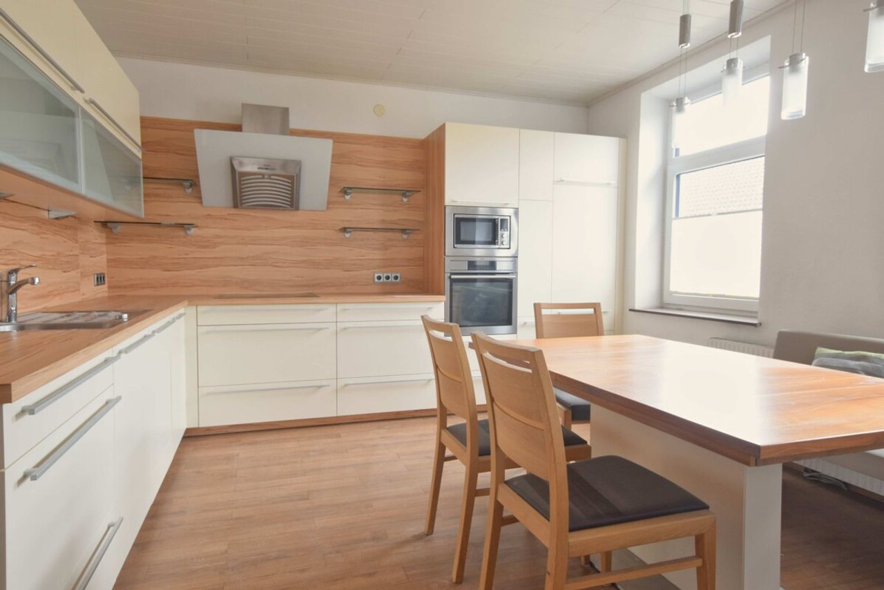 In zentraler Lage steht ein vielseitig nutzbares Wohn- und Geschäftshaus mit rund 240 m² Gesamtfläche zum Verkauf. Im Erdgeschoss befinden sich eine Wohnung mit etwa 56 m² und eine Geschäftsfläche mit Schaufenster von rund 44,6 m². Die große Wohnung im Obergeschoss bietet rund 113 m² und ist über eine zusätzliche Treppe mit dem Dachgeschoss verbunden.