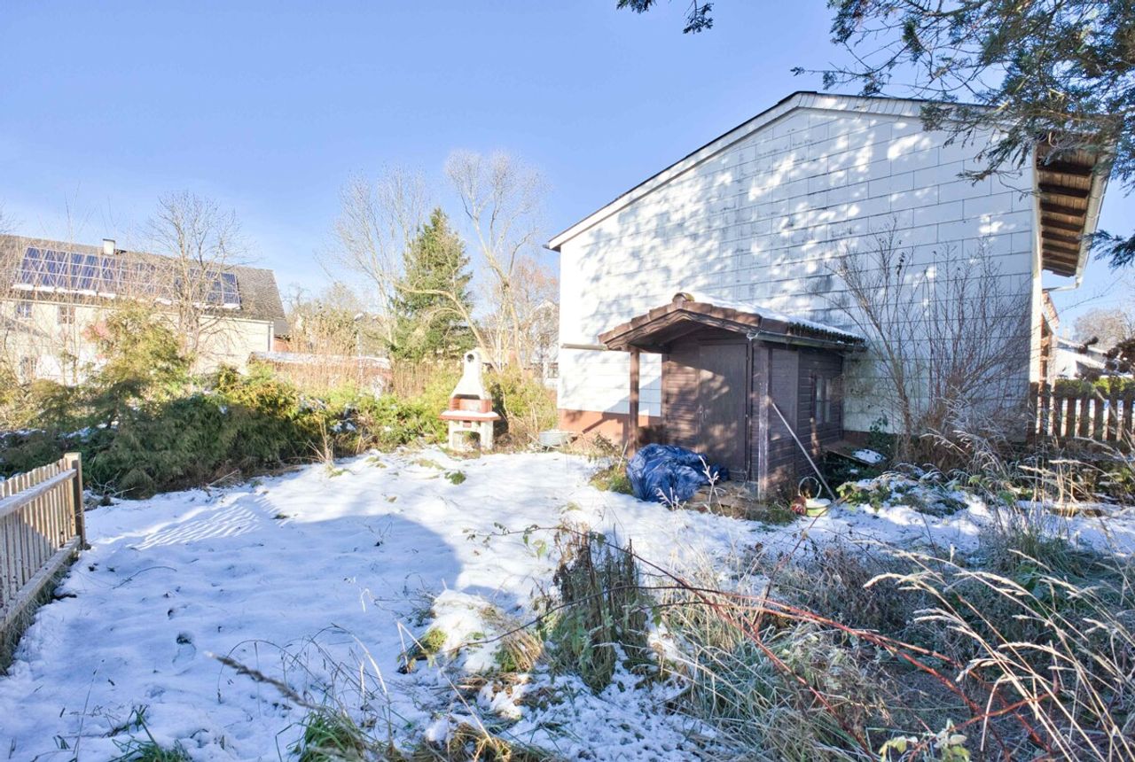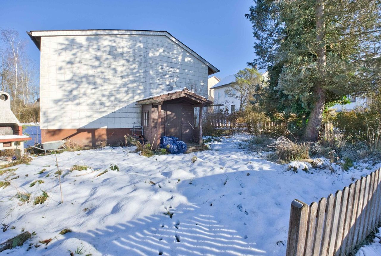 Etwa 100 Meter vom Haus liegt ein eigener Garten mit rund 205 m² sowie zusätzlichen Stellplätzen. Die Fläche ist auch als Baugebiet gewidmet.
