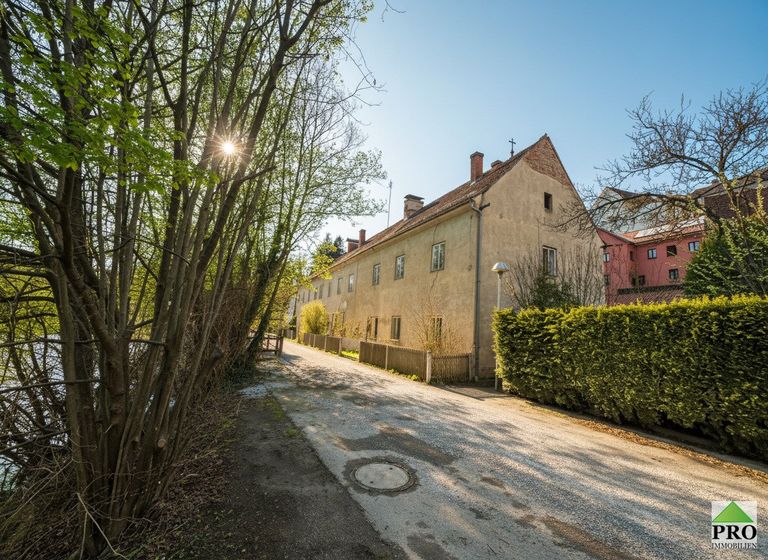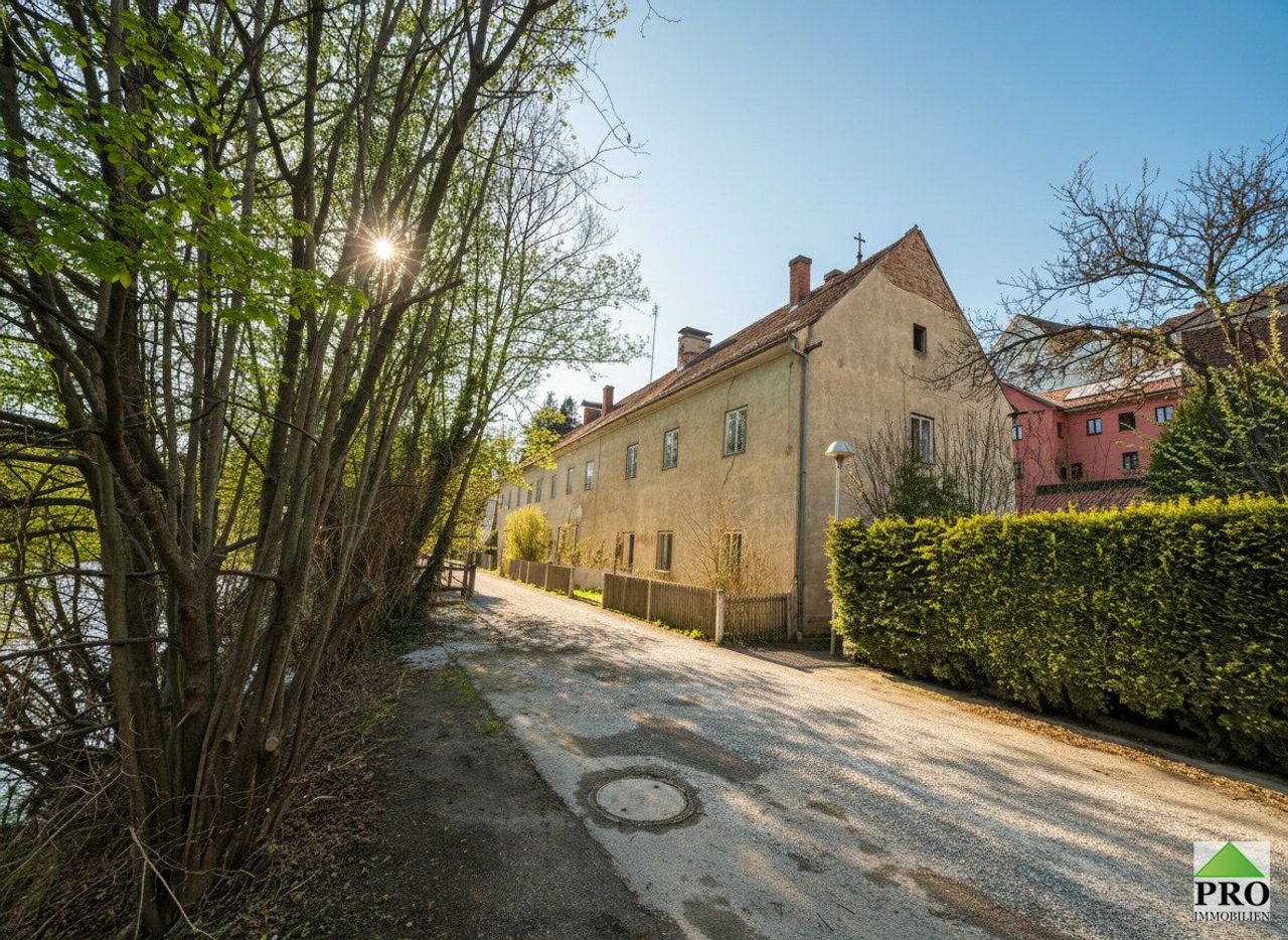 Historisches, sanierungsbedürftiges gr. Gebäude mit ca. 600m2 Nutzfläche. Sehr romantische Lage