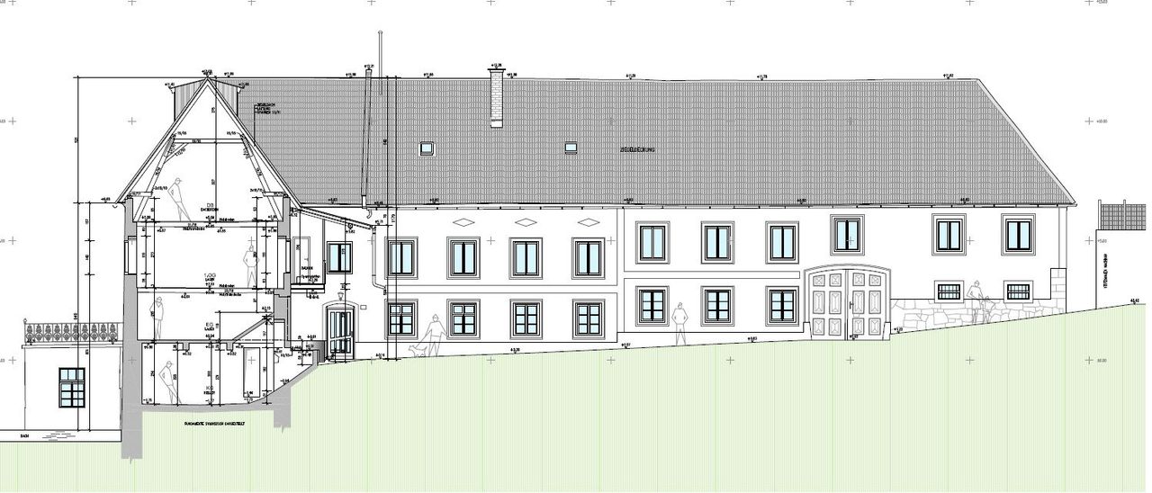 Das charmante Bestandsgebäude bietet eine Wohnfläche von über 680 m² sowie zusätzlich fast 930 m² an vielseitig nutzbarer Fläche. Die Bausubstanz stammt aus früheren Zeiten und ist entsprechend sanierungsbedürftig, wobei bereits erste Modernisierungsmaßnahmen – etwa der Tausch von Fenstern, Türen sowie Teilbereiche der Haustechnik – umgesetzt wurden. Kanal-, Wasser- und Straßenanschluss sind vollständig bezahlt, was künftigen Eigentümer zusätzliche Planungssicherheit gibt.