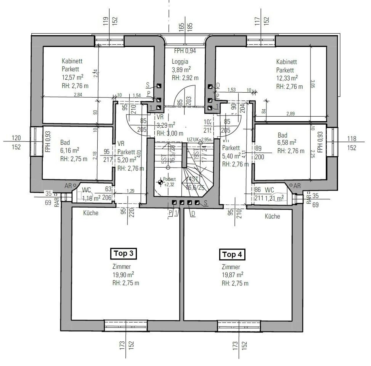 Raumaufteilung: Vorzimmer, 3 Zimmer, Küche, Badezimmer, WC, Kellerabteil; - Heizung Gasetagenheizung.