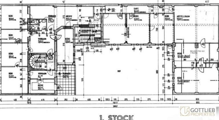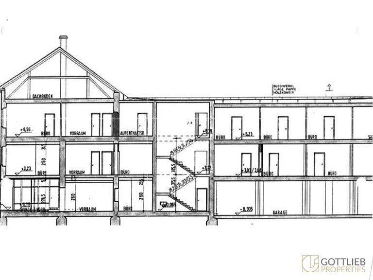 + Umwidmung von Büroflächen in Wohnnutzflächen (ca. 345 m²), Bürowidmung (ca. 400 m²), Garage (ca.135 m²) und Neubau Dachgeschoss (gewichtet ca. 353 m²) möglich