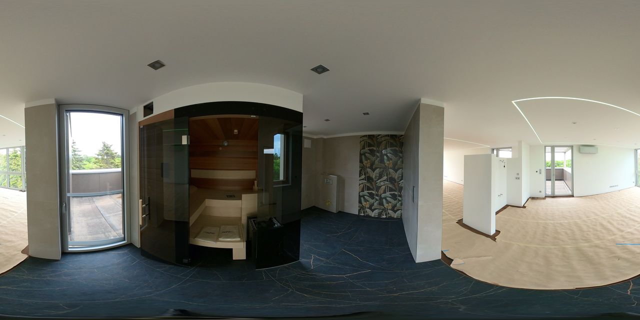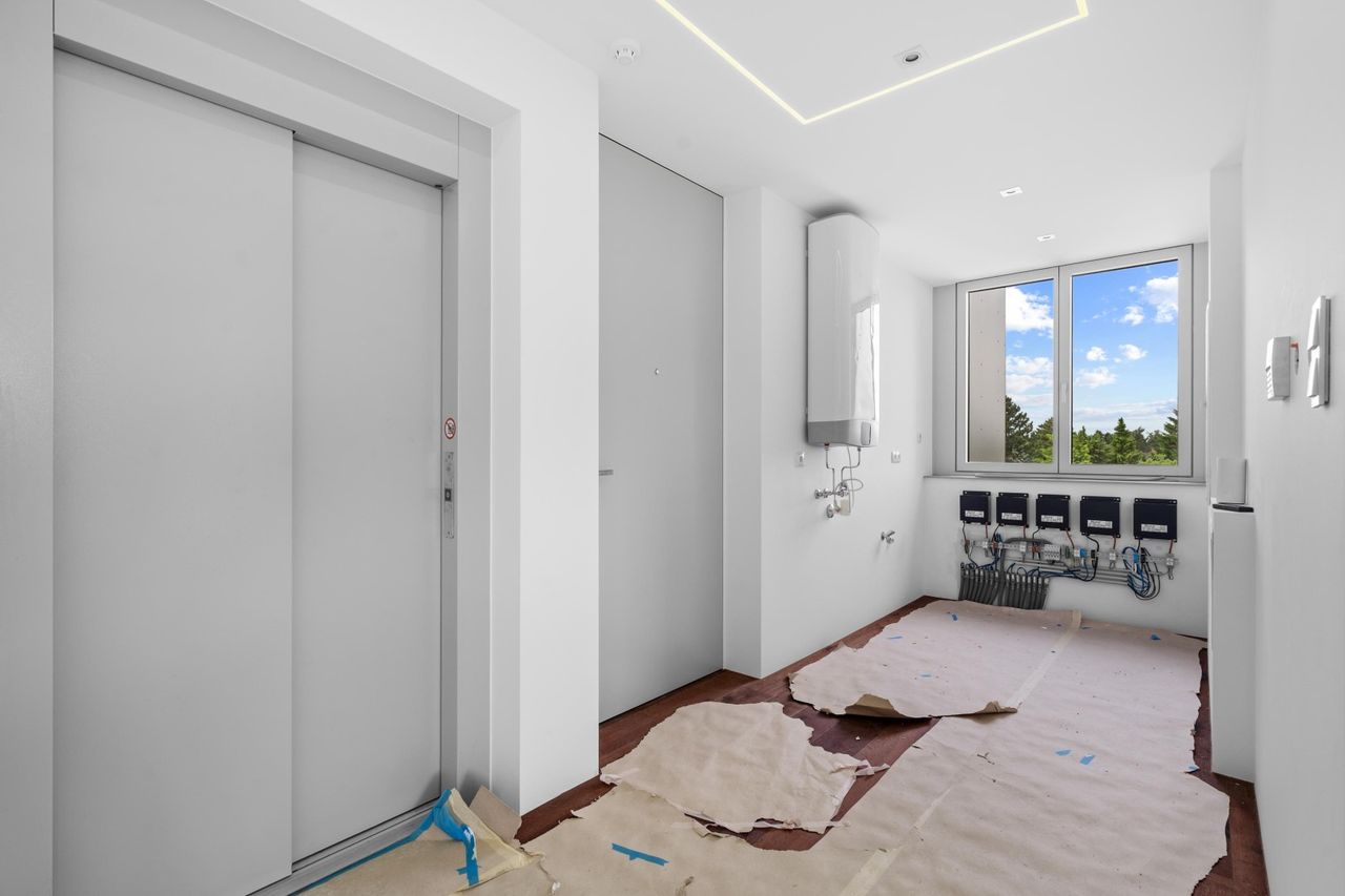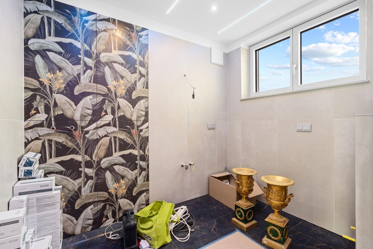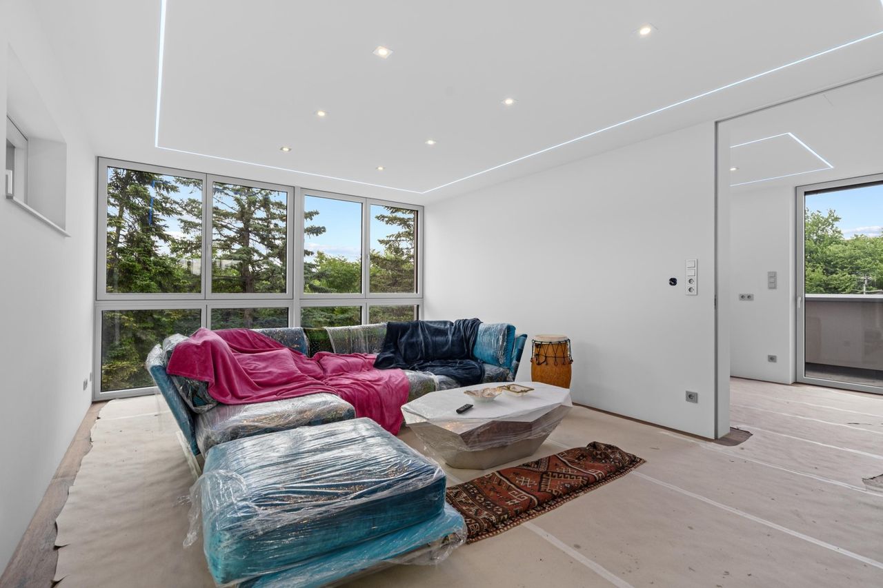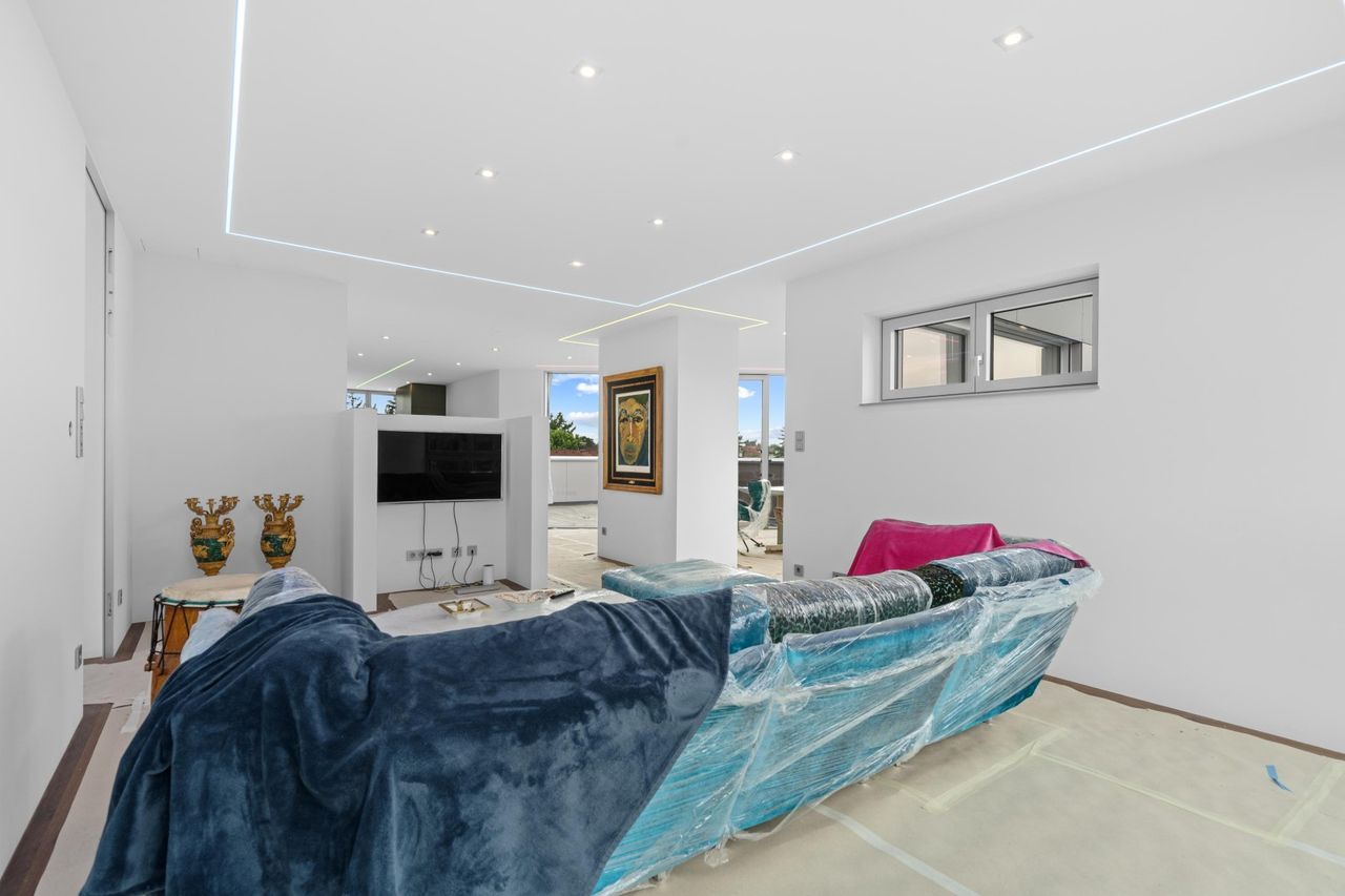 Diese exquisite Immobilie befindet sich in der finalen Phase der Fertigstellung, wobei noch kleinere Arbeiten wie die Außenanlage (inklusive Beleuchtung und Eingangsbereich mit Umfriedung), Innentüren mit erhöhten Raumhöhen sowie die Verlegung der Terrassen gemäß individueller Ansprüche abgeschlossen werden müssen. Sauna, Pool, Wintergarten, Gartenküche sowie sämtliche innere Ausstattungsmerkmale wie LED-Raffstores, moderne Bäder, WC-Anlagen, Küchen und hochwertige Parkettböden sind bereits fertiggestellt. Eine zentrale Steuerung für Heizung und LED-Raffstores über das EPP-System sowie ein Aufzug bis ins Penthouse sind ebenfalls installiert.