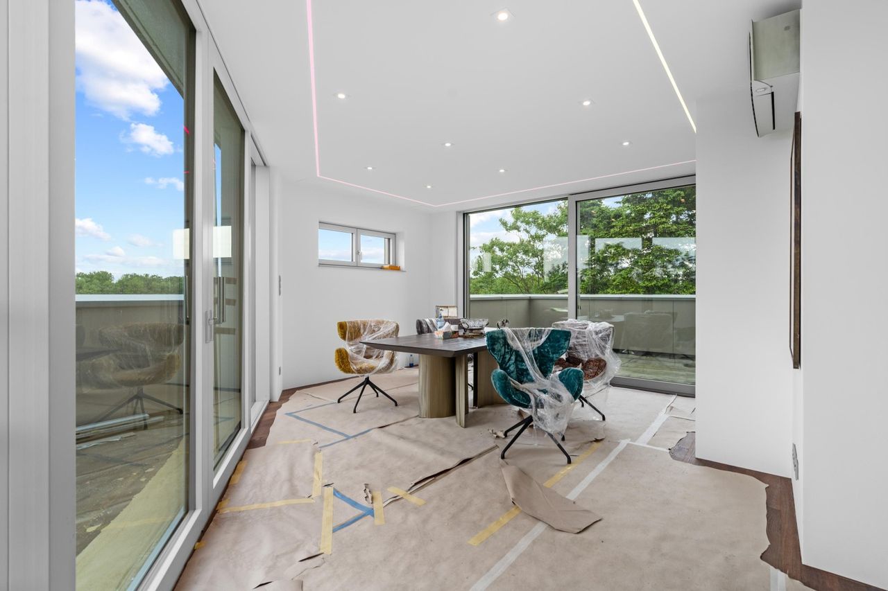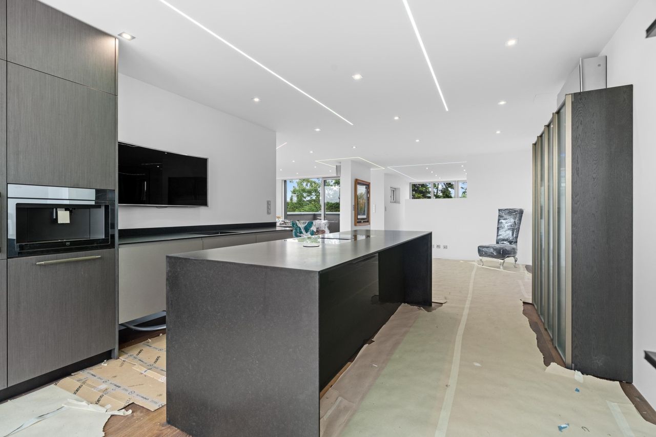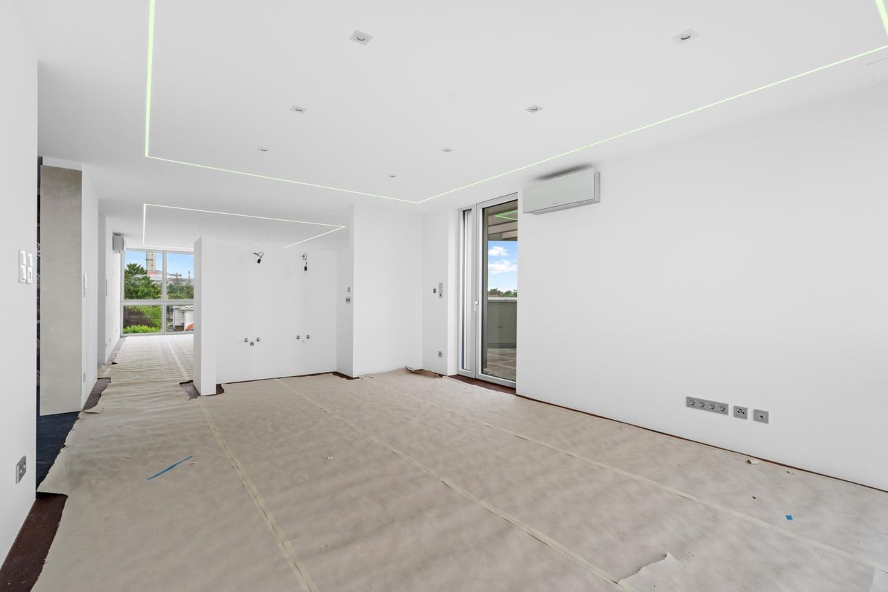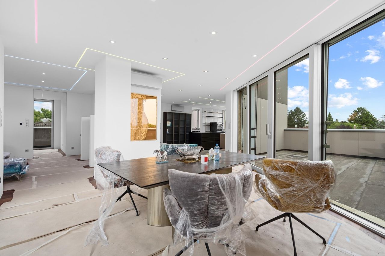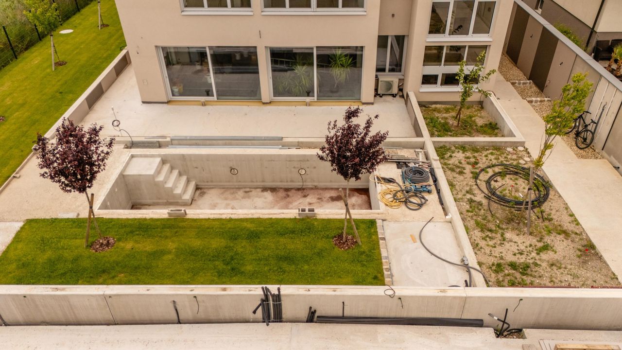 Diese exquisite Immobilie befindet sich in der finalen Phase der Fertigstellung, wobei noch kleinere Arbeiten wie die Außenanlage (inklusive Beleuchtung und Eingangsbereich mit Umfriedung), Innentüren mit erhöhten Raumhöhen sowie die Verlegung der Terrassen gemäß individueller Ansprüche abgeschlossen werden müssen. Sauna, Pool, Wintergarten, Gartenküche sowie sämtliche innere Ausstattungsmerkmale wie LED-Raffstores, moderne Bäder, WC-Anlagen, Küchen und hochwertige Parkettböden sind bereits fertiggestellt. Eine zentrale Steuerung für Heizung und LED-Raffstores über das EPP-System sowie ein Aufzug bis ins Penthouse sind ebenfalls installiert.