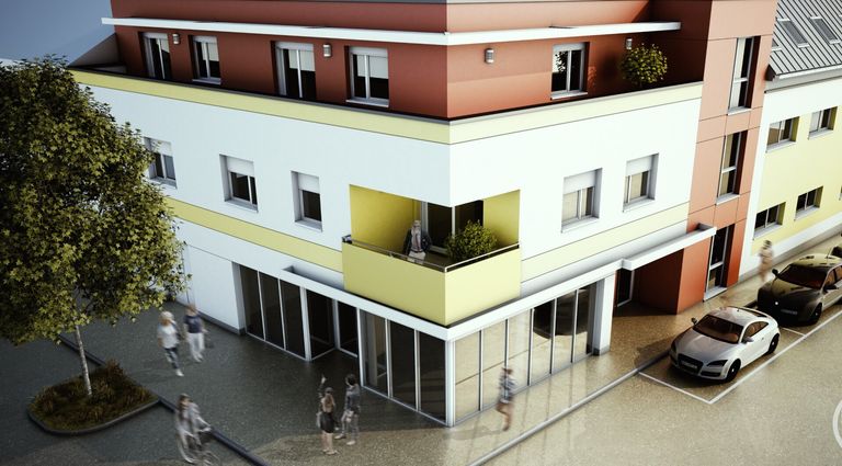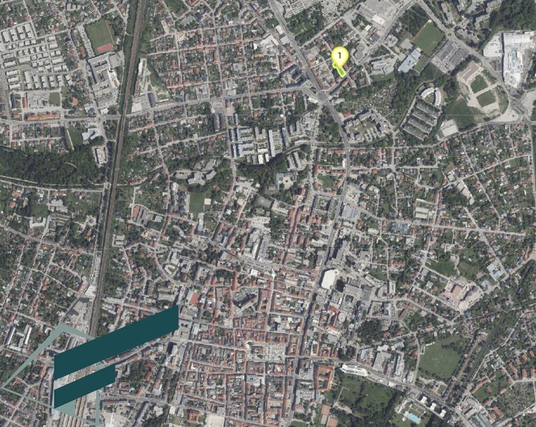 Geschoßanzahl: EG + 2 Obergeschoße (harmonische Integration in das Stadtbild).