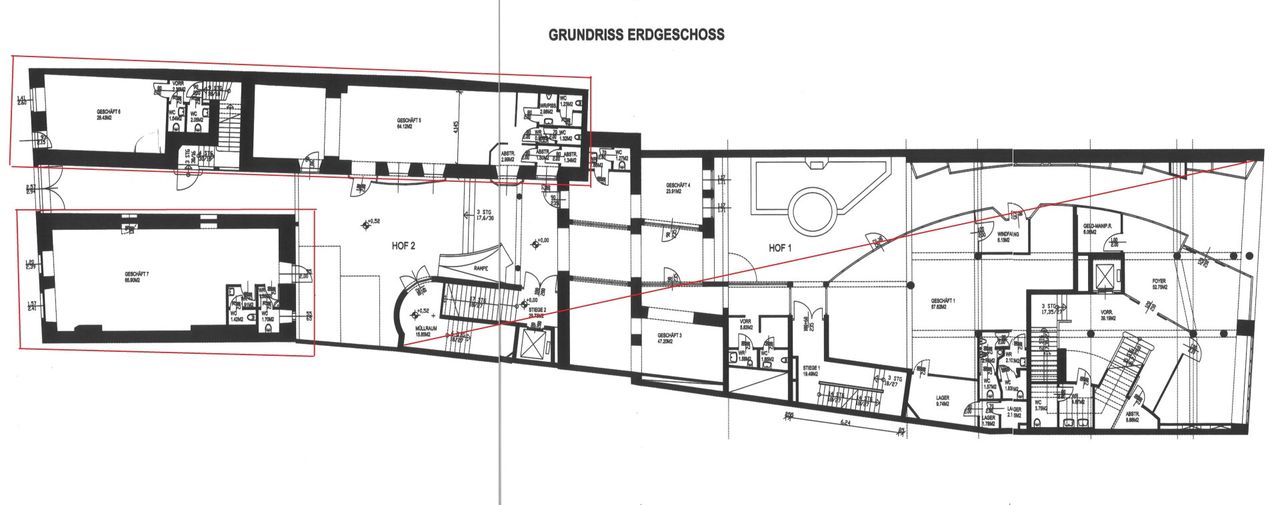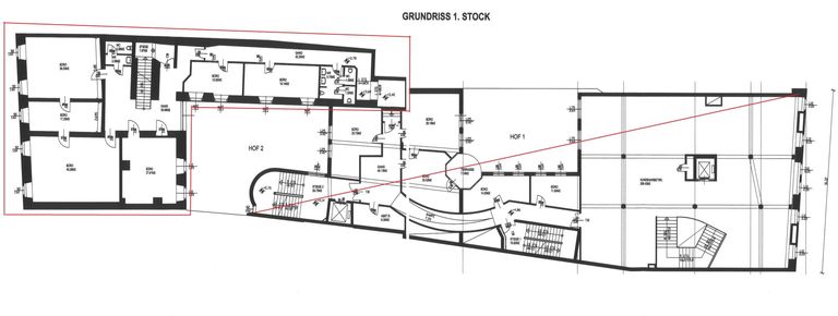 Eine Umwidmungsmöglichkeit von Gewerbe auf Wohnungen ab 1. Stock aufwärts wäre auch gegeben.