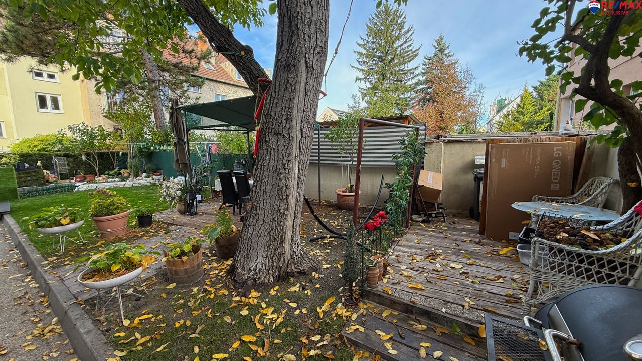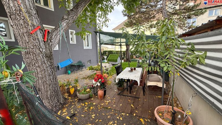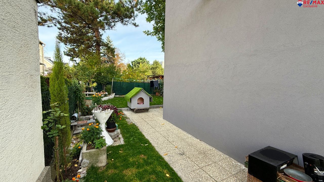 Der Grund mit insgesamt 228 m² bietet eine kleine Terrasse mit Sitzmöglichkeiten sowie genug Restfläche zum Aufstellen eines kleinen Pools.