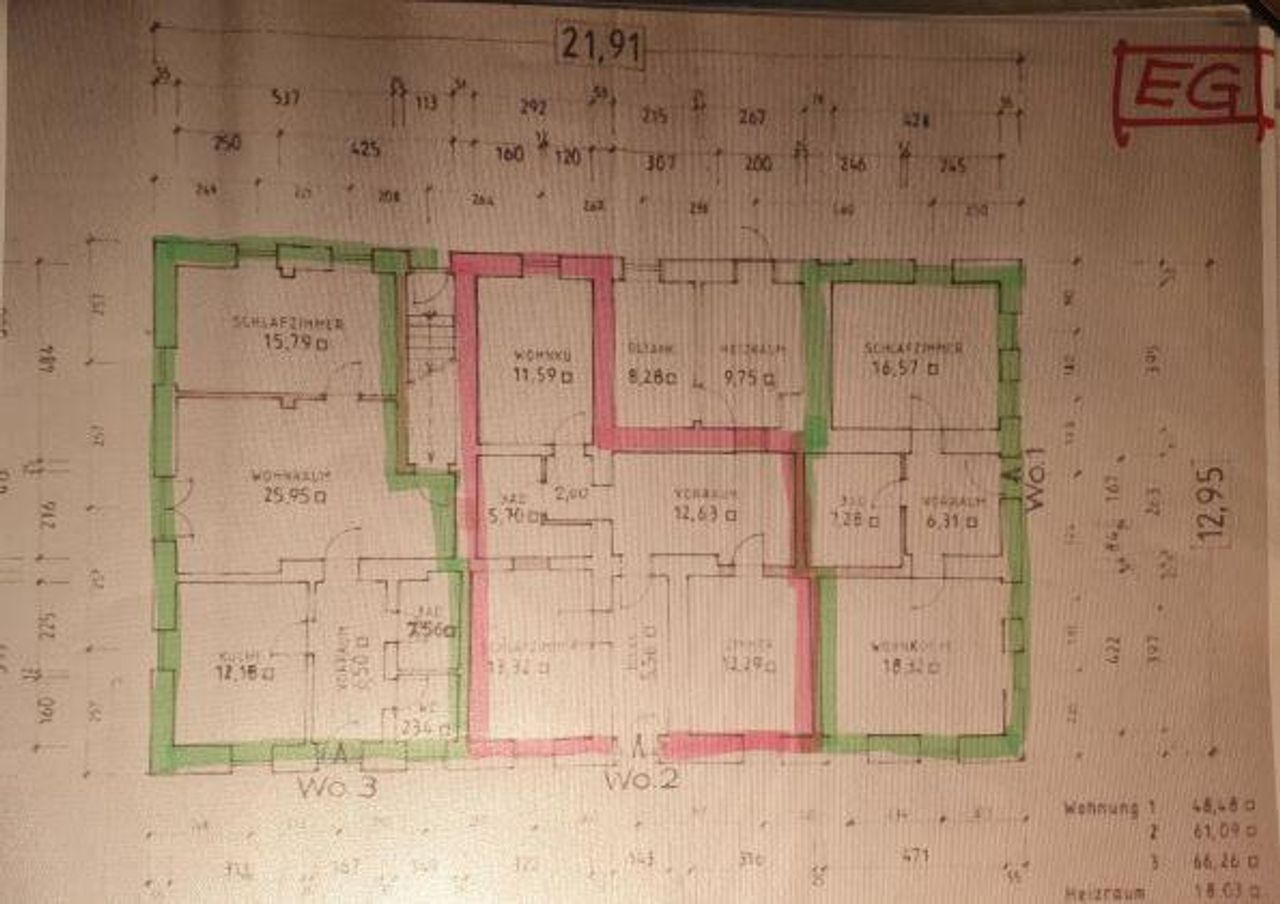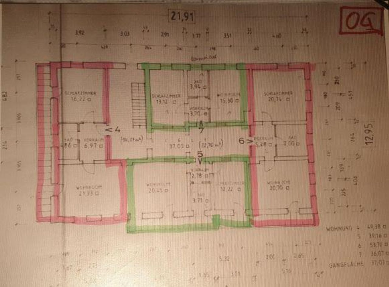Grundfläche 1.405m², 9 Wohnung auf 3 Etagen in verschiedenen Größen, voll vermietet, Rendite über 4%, ca. 460m² Wohnfläche verteilt auf Erdgeschoss, Obergeschoss u nachträglich ausgebautem Dachgeschoss, 3 Garagen, sonnige Lage