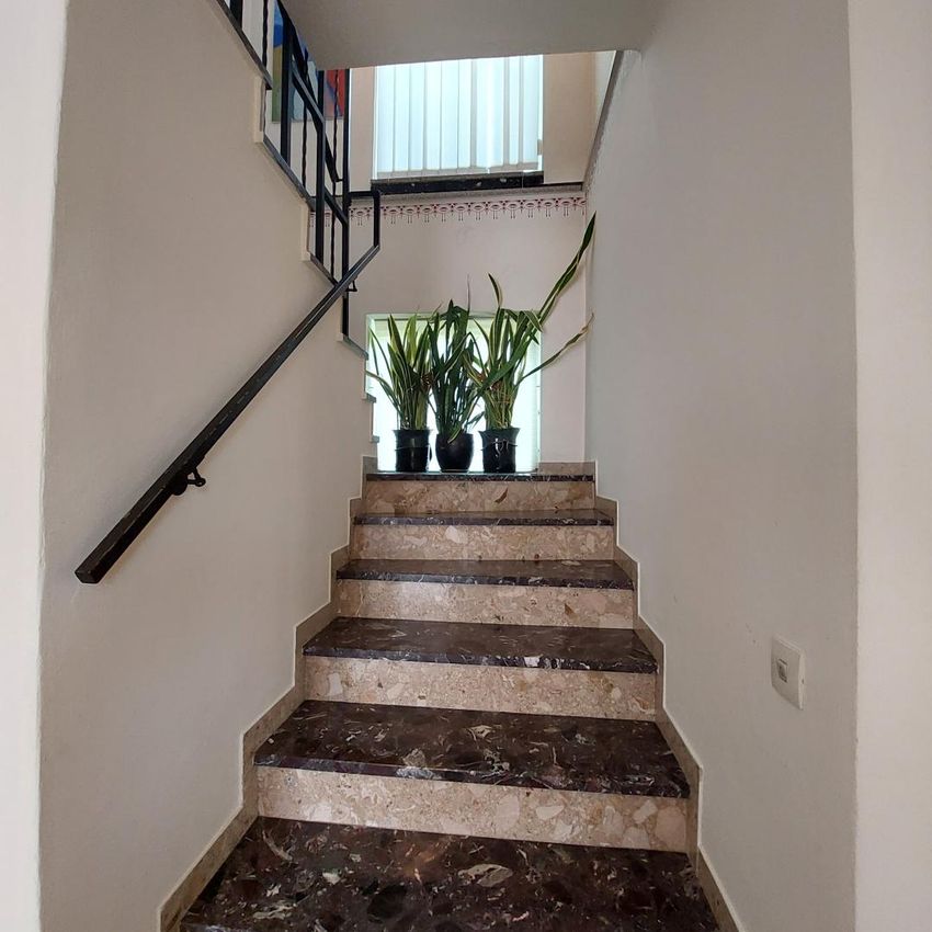 In das Obergeschoss, welches ebenfalls über drei Zimmer, Küche, Badezimmer mit Badewanne und Handwaschbecken verfügt sowie separater Toilette, gelangt man über eine schöne Marmortreppe. Auch eine separate Toilette steht zur Verfügung. Eine überdachte Terrasse mit herrlichem Burgblick macht auch diese Hausebene zu einer geräumigen, vollständigen Wohneinheit.